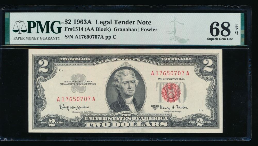 One 1963A $2 Legal Tender Note PMG 68EPQ.