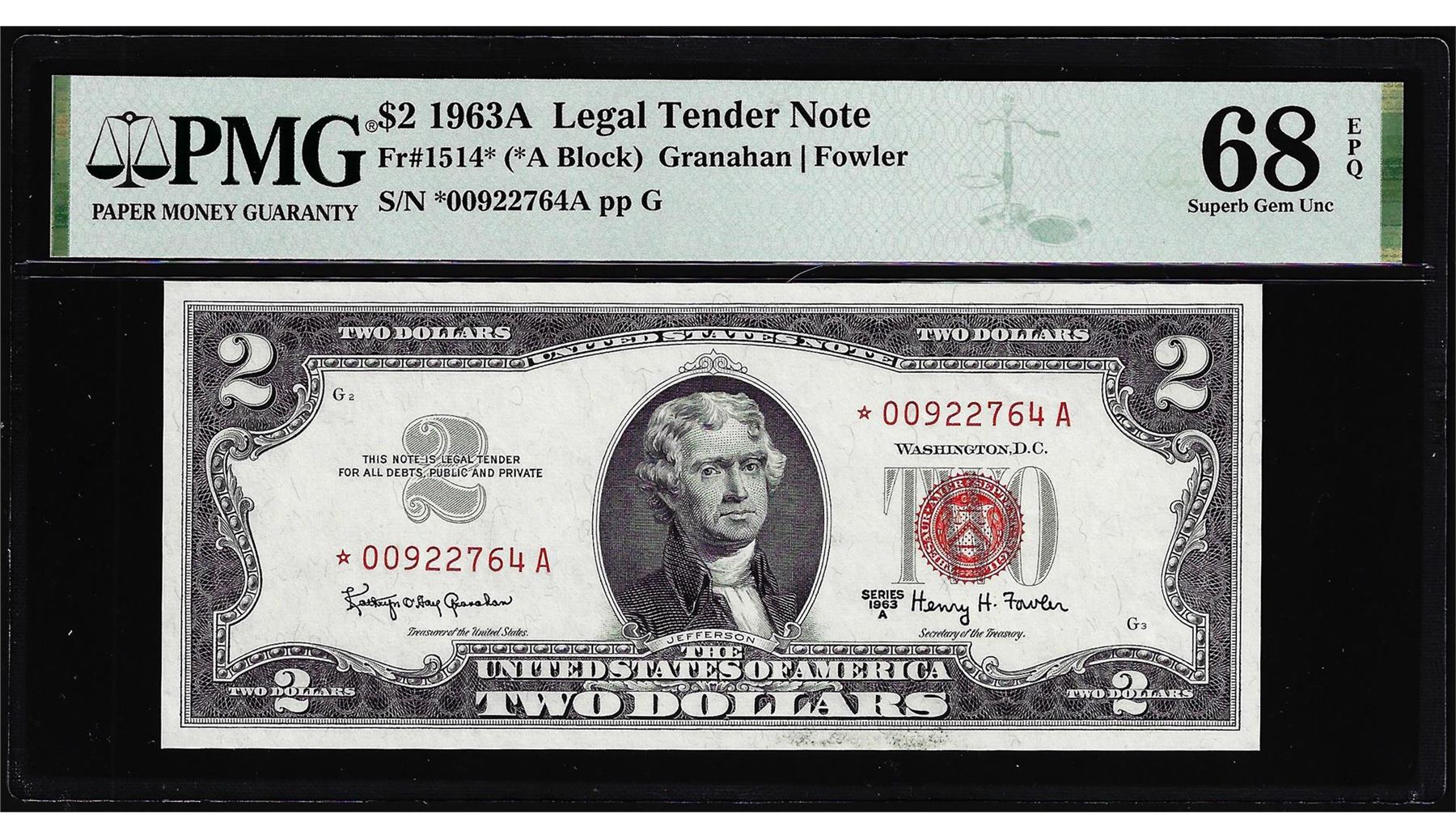 1963A $2 Legal Tender Star Note Fr.1514* PMG Superb Gem Uncirculated 68EPQ