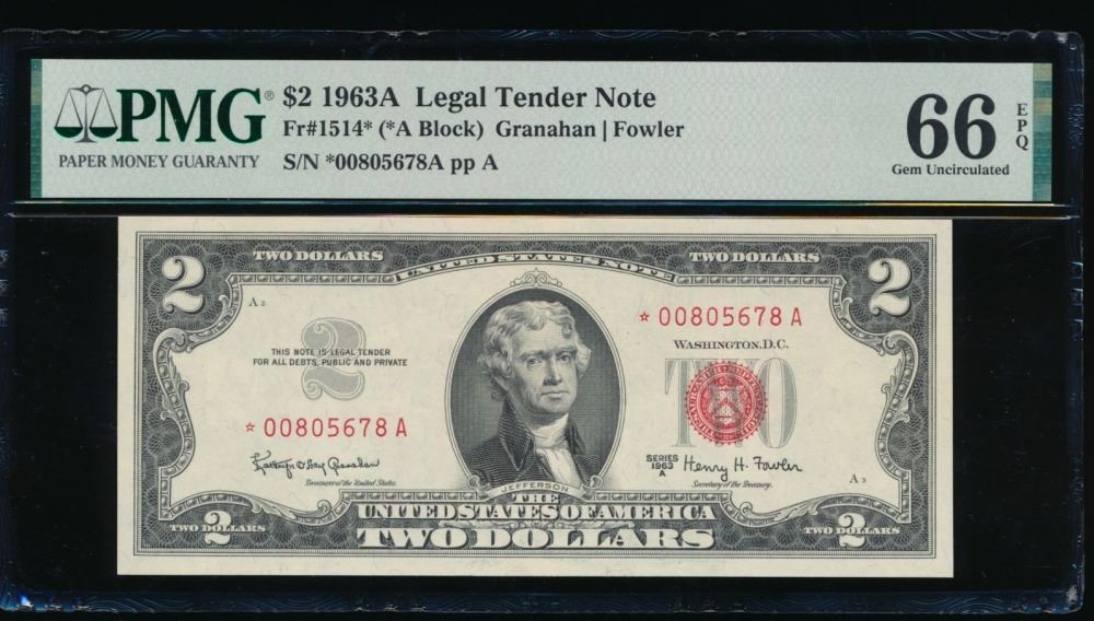 One 1963A $2 STAR Legal Tender Note PMG 66EPQ.