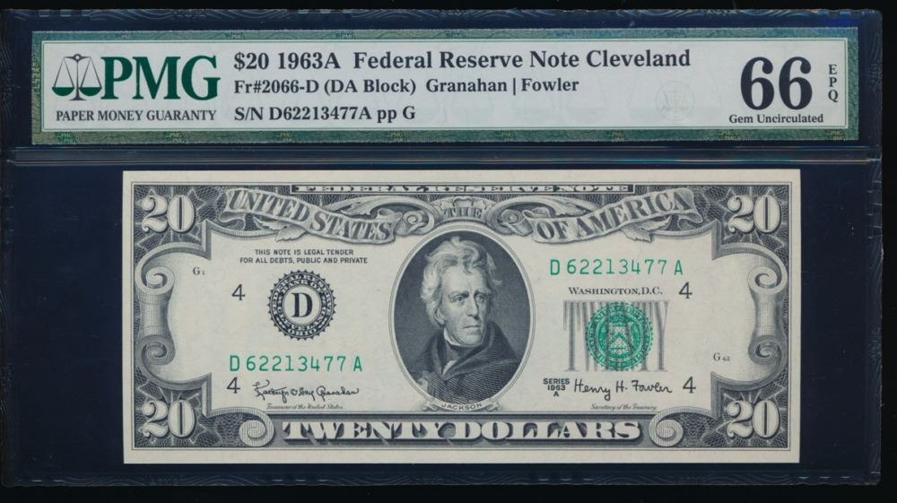 One 1963A $20 Cleveland Federal Reserve Note PMG 66EPQ.
