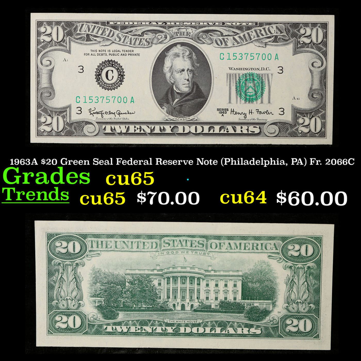 1963A $20 Green Seal Federal Reserve Note (Philadelphia, PA) Fr. 2066C Grades Gem CU.