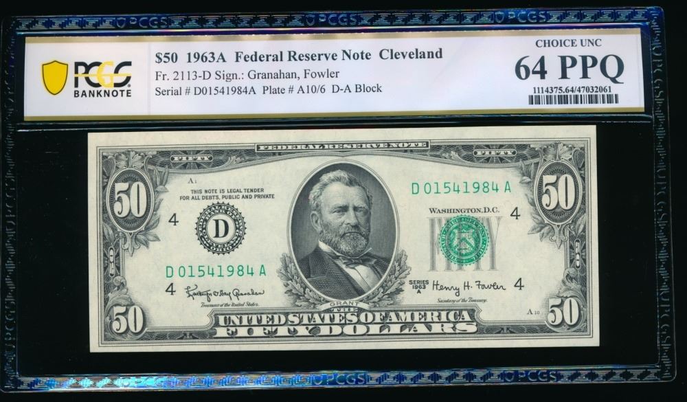 One 1963A $50 Cleveland FRN PCGS 64PPQ.