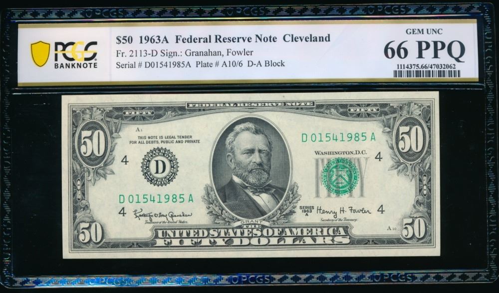 One 1963A $50 Cleveland FRN PCGS 66PPQ.