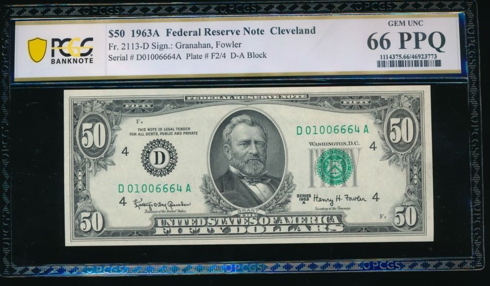 One 1963A $50 Cleveland FRN PCGS 66PPQ.