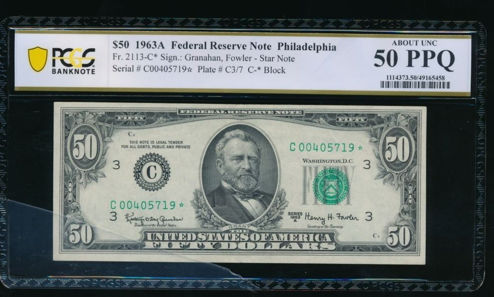 One 1963A $50 STAR Philadelphia FRN PCGS 50PPQ.