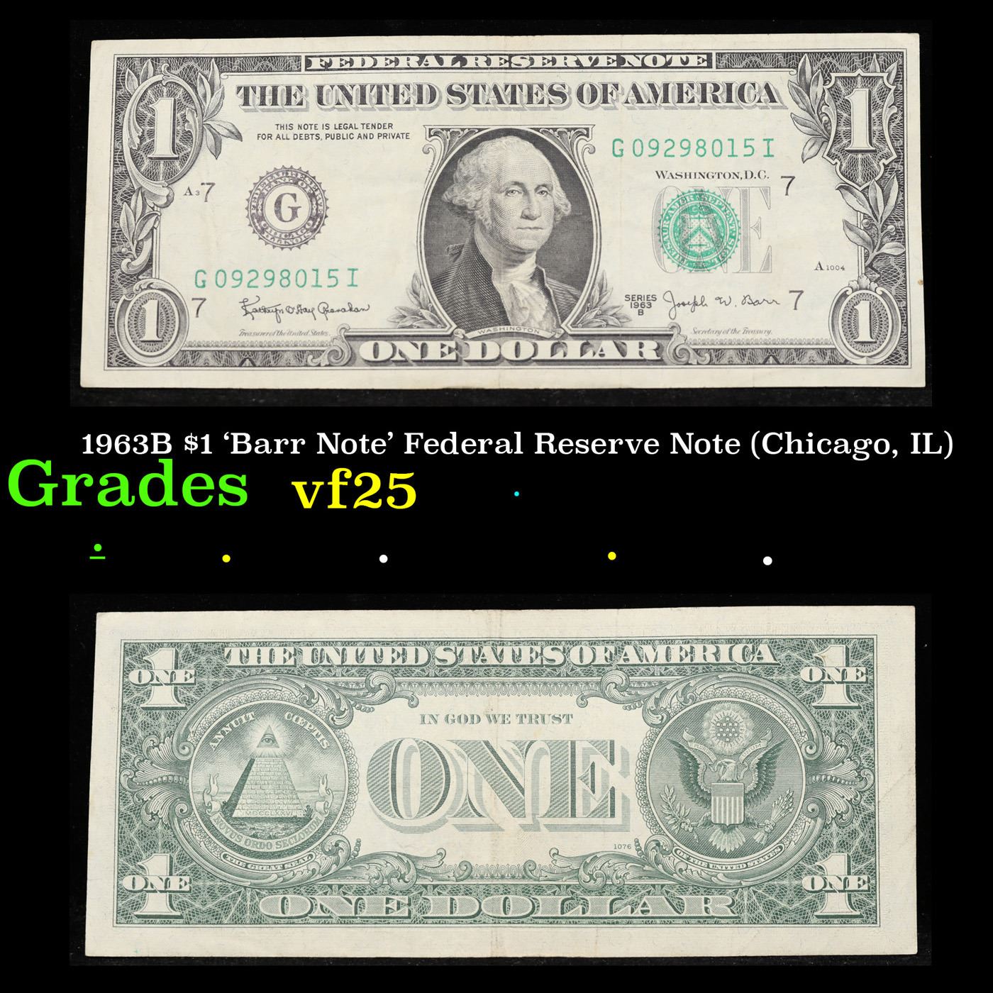 1963B $1 'Barr Note' Federal Reserve Note (Chicago, IL) Grades vf+