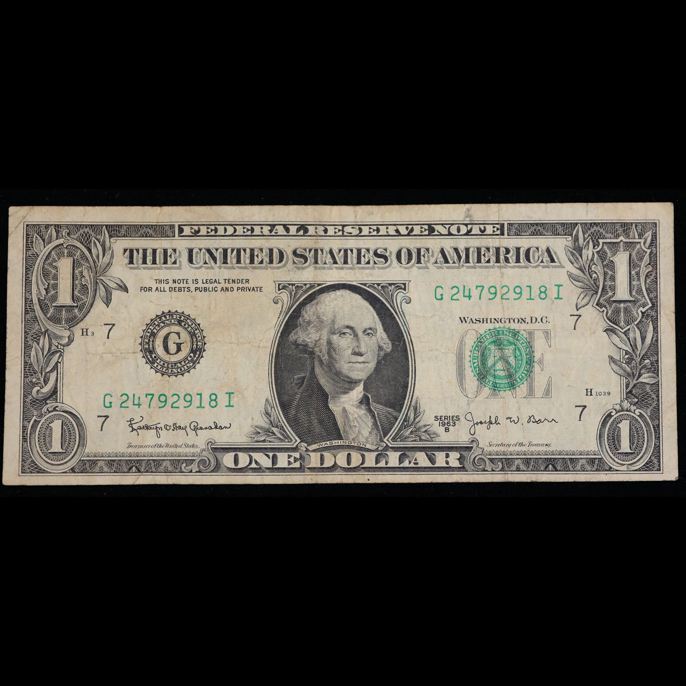 1963B $1 'Barr Note' Federal Reserve Note (Chicago, IL) Grades vf+