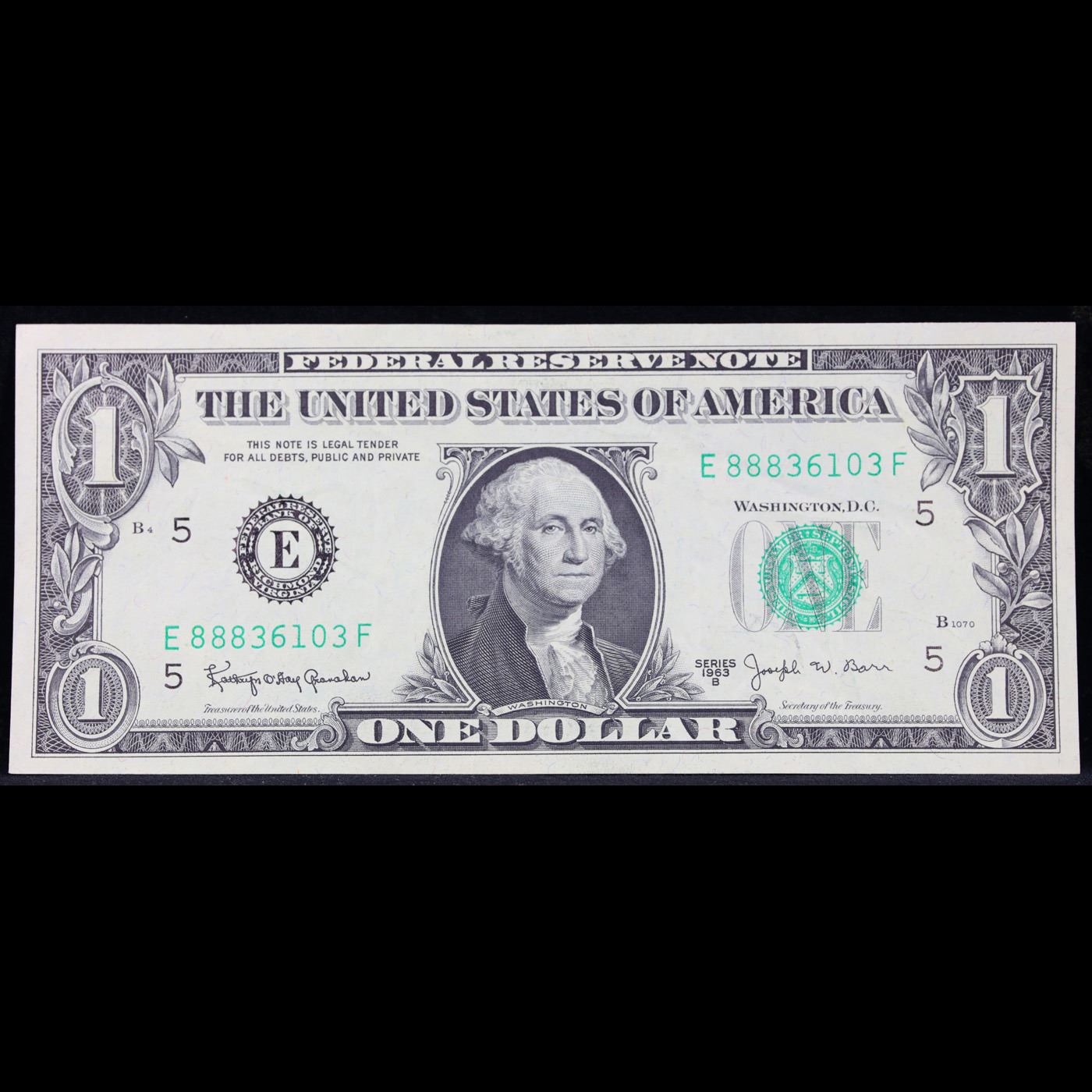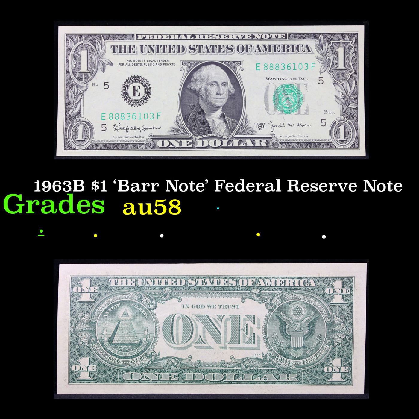 1963B $1 'Barr Note' Federal Reserve Note Grades Choice AU/BU Slider. Among the most sought-after U.S. paper money of the late 1960s are the short-lived "Barr" Notes. These distinctive $1 Federal Reserve Notes bear the signature of Joseph W. Barr, who served as Secretary of the Treasury during the last 28 days of President Lyndon B. Johnson's administration. Barr was replaced when President Nixon chose a successor. Due to Barr's short term, his signature appeared only on the $1 notes of Series 1963B.