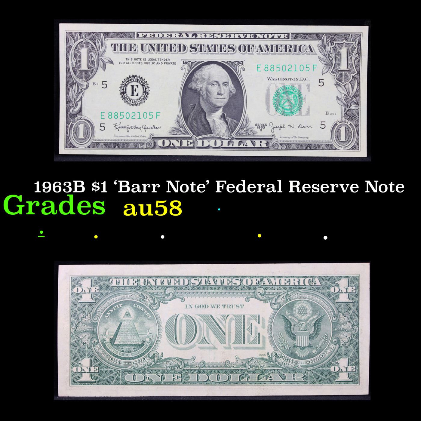 1963B $1 'Barr Note' Federal Reserve Note Grades Choice AU/BU Slider. Among the most sought-after U.S. paper money of the late 1960s are the short-lived "Barr" Notes. These distinctive $1 Federal Reserve Notes bear the signature of Joseph W. Barr, who served as Secretary of the Treasury during the last 28 days of President Lyndon B. Johnson's administration. Barr was replaced when President Nixon chose a successor. Due to Barr's short term, his signature appeared only on the $1 notes of Series 1963B.