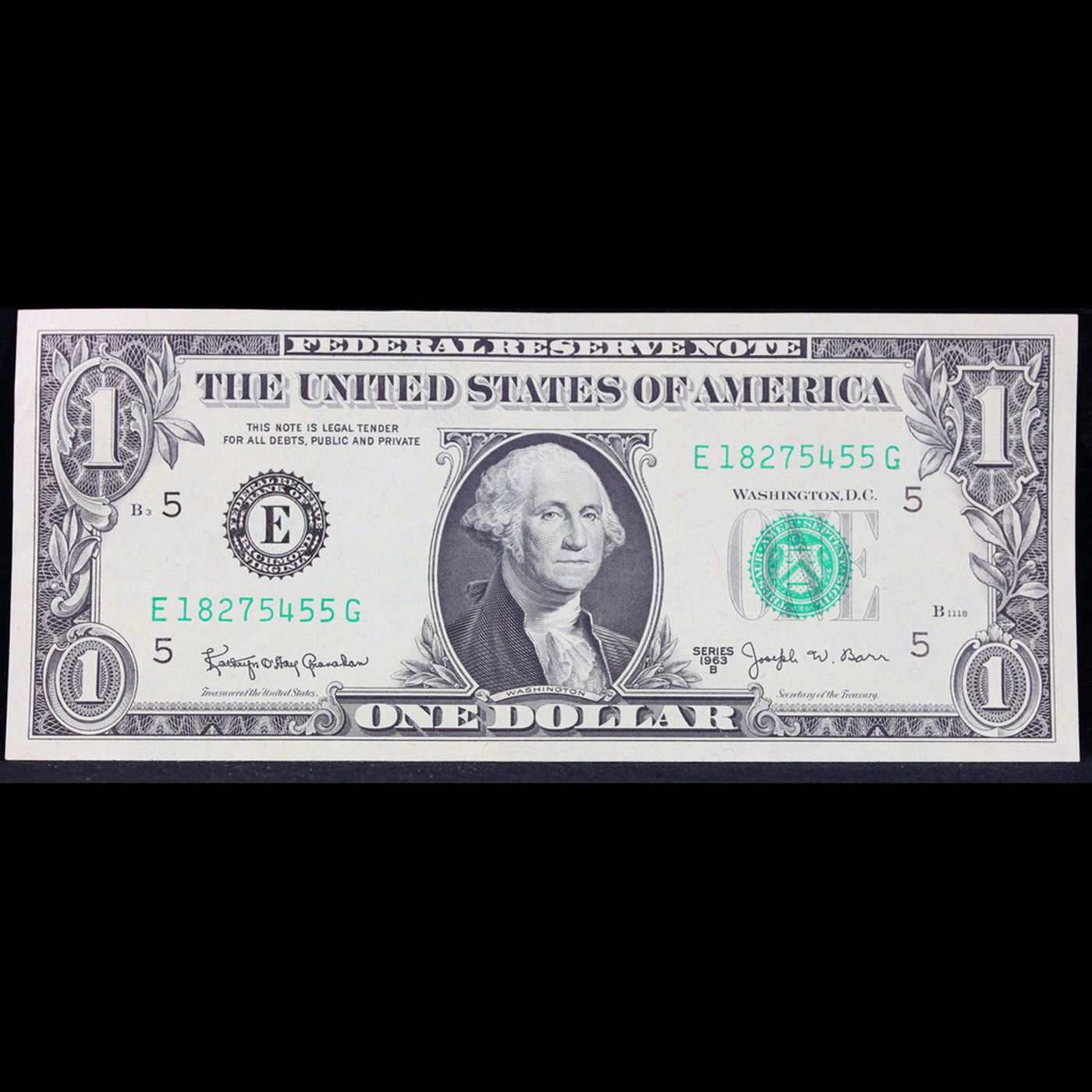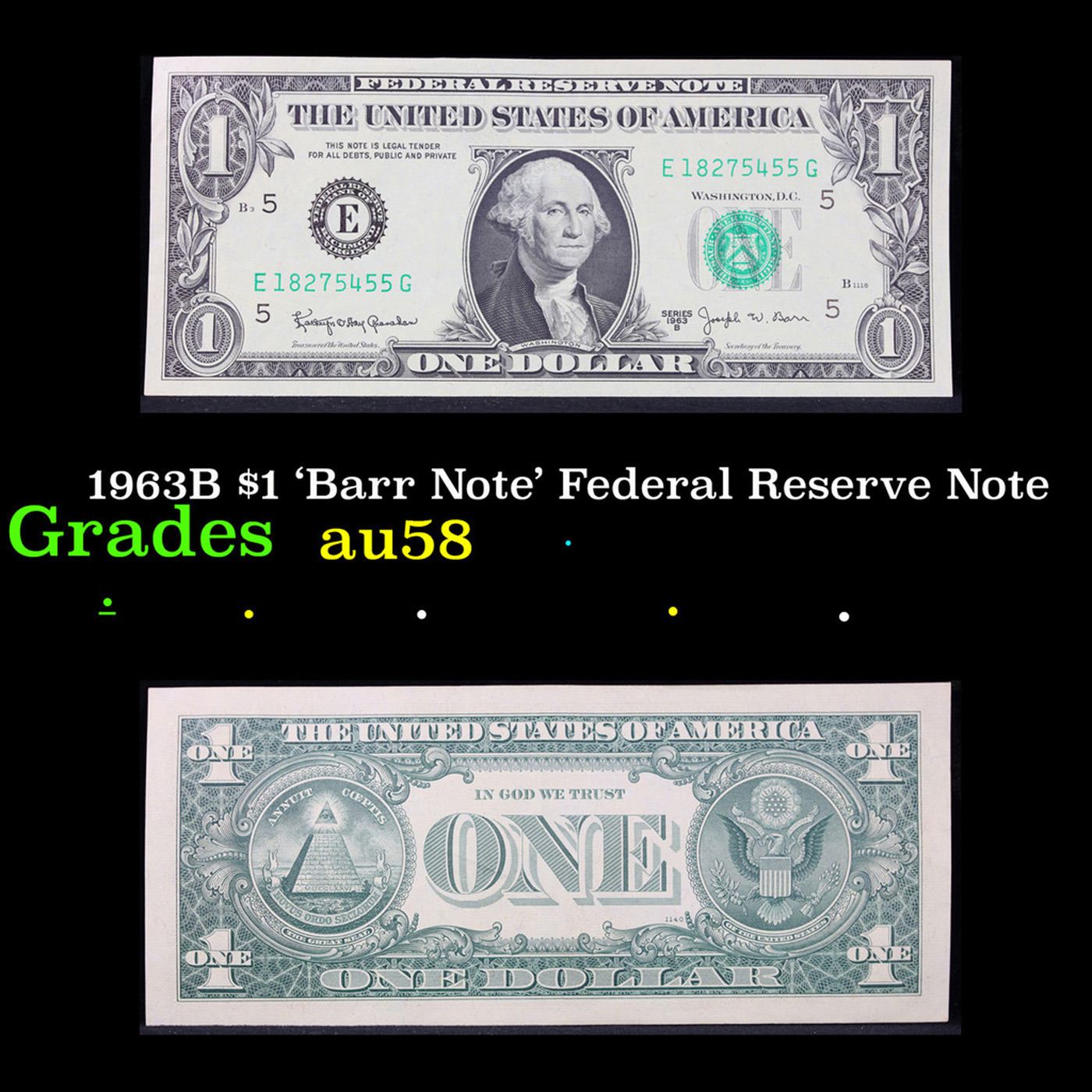 1963B $1 'Barr Note' Federal Reserve Note Grades Choice AU/BU Slider. Among the most sought-after U.S. paper money of the late 1960s are the short-lived "Barr" Notes. These distinctive $1 Federal Reserve Notes bear the signature of Joseph W. Barr, who served as Secretary of the Treasury during the last 28 days of President Lyndon B. Johnson's administration. Barr was replaced when President Nixon chose a successor. Due to Barr's short term, his signature appeared only on the $1 notes of Series 1963B.
