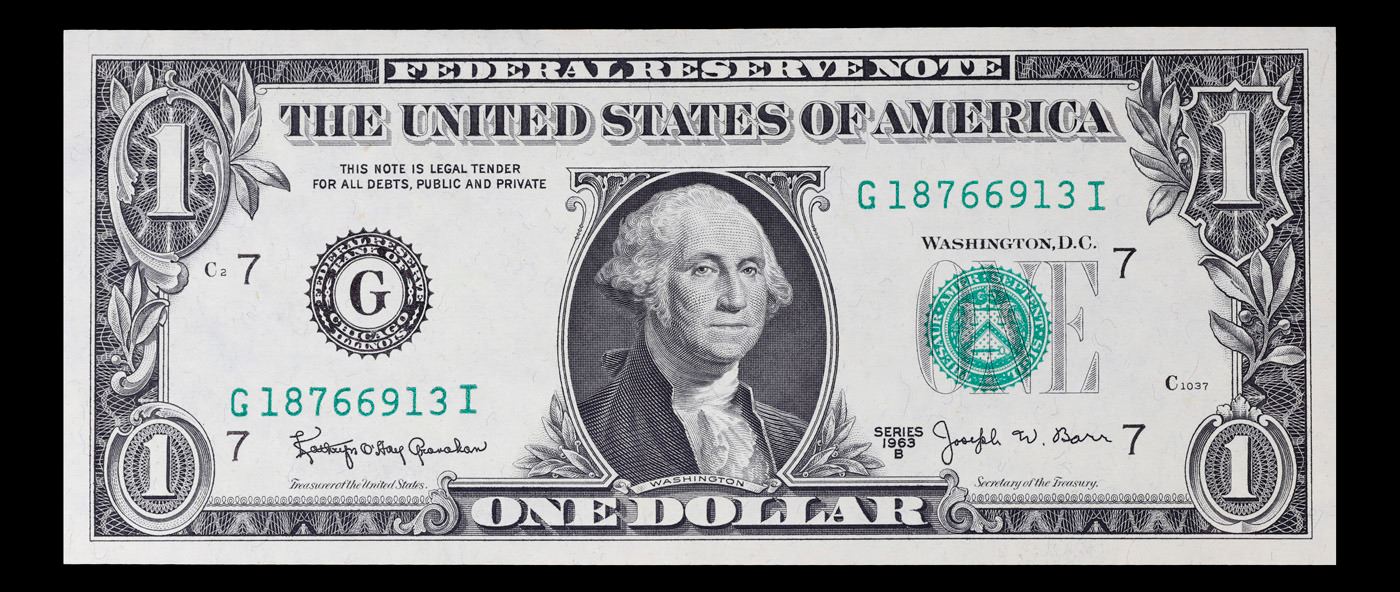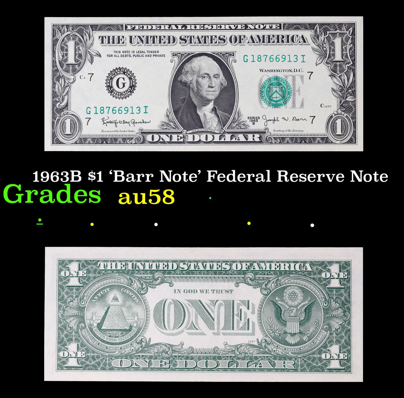 1963B $1 'Barr Note' Federal Reserve Note Grades Choice AU/BU Slider.