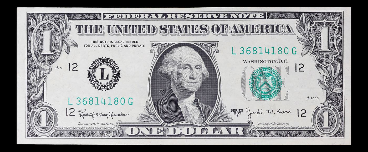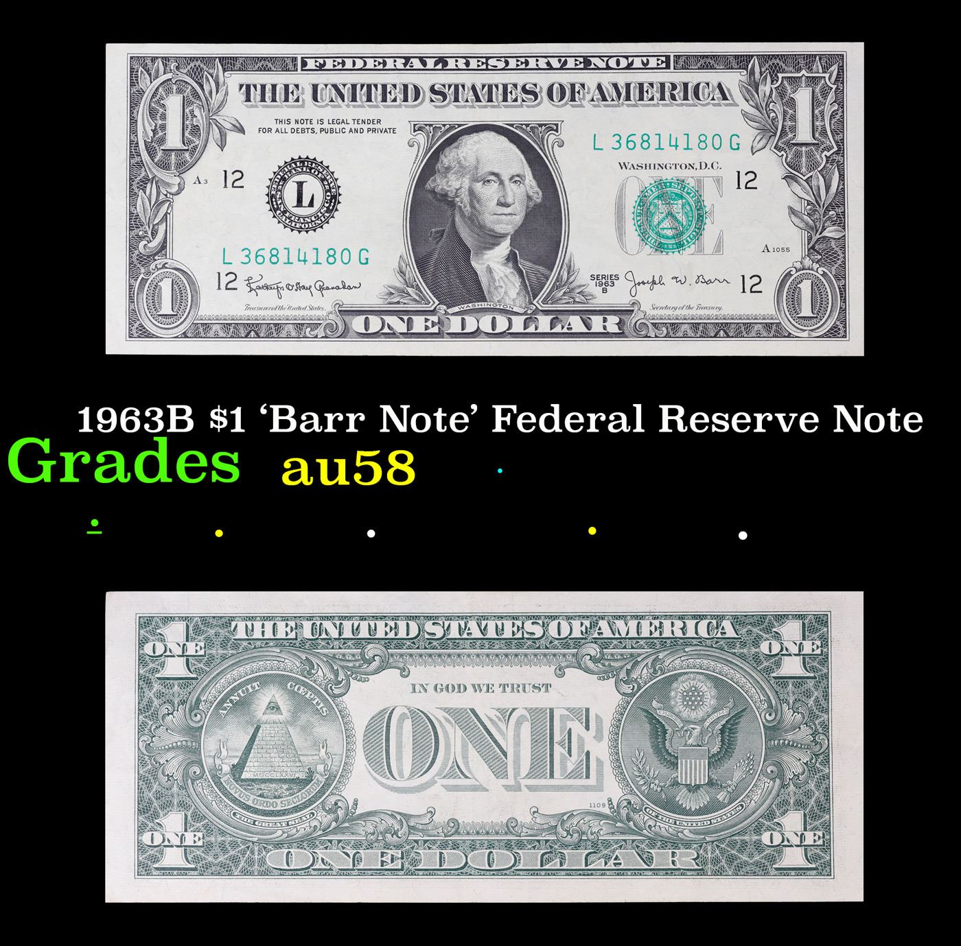 1963B $1 'Barr Note' Federal Reserve Note Grades Choice AU/BU Slider.
