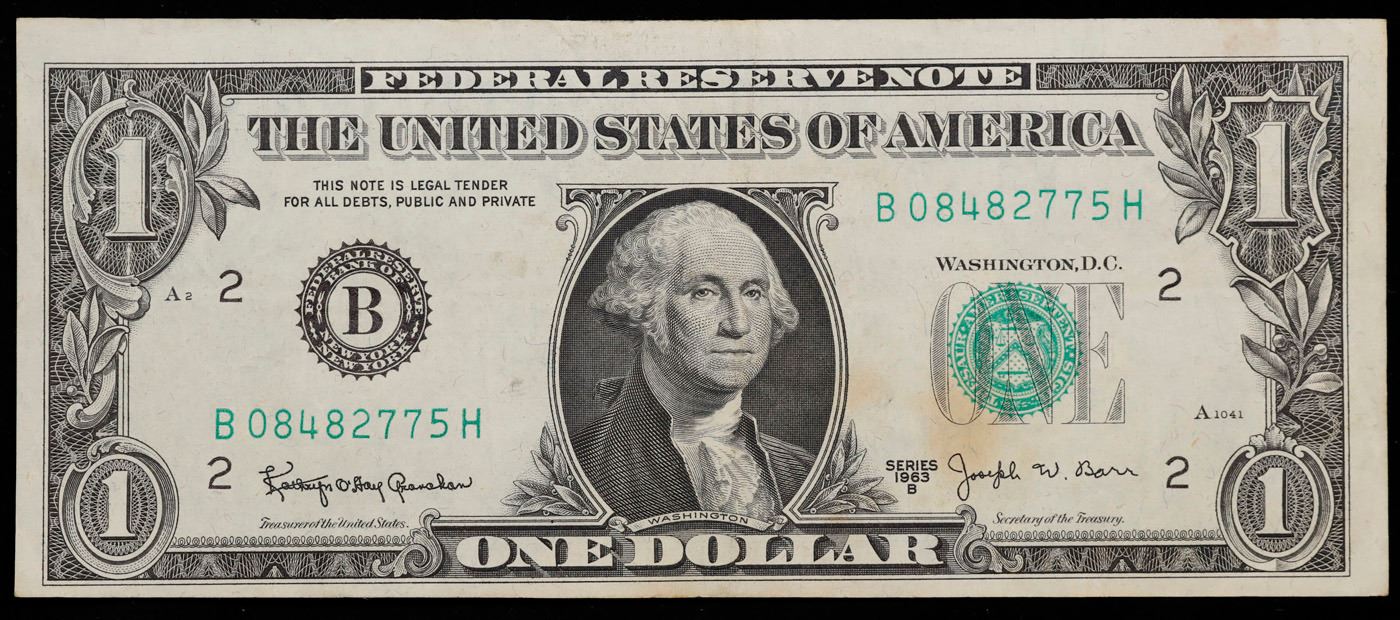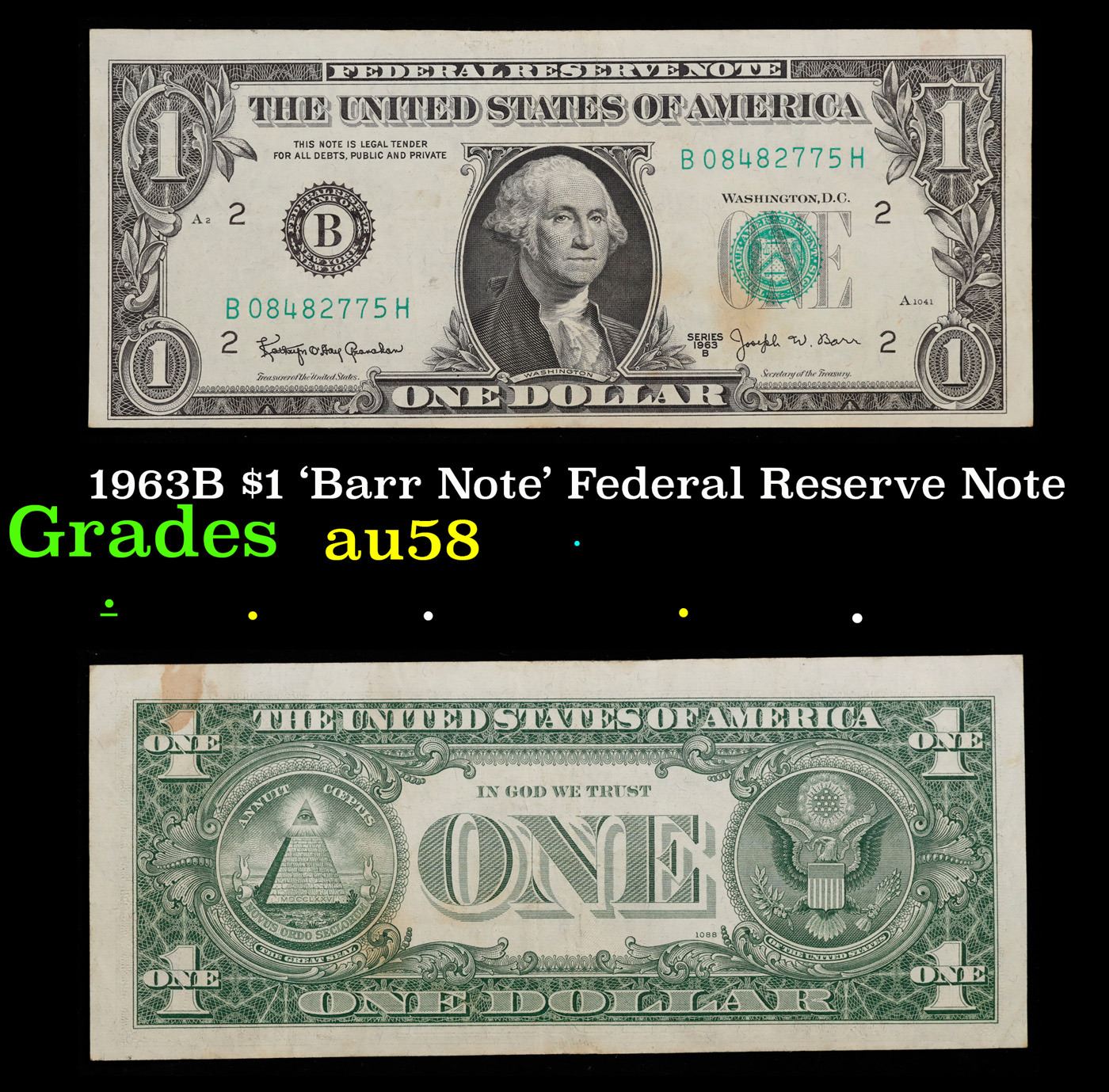 1963B $1 'Barr Note' Federal Reserve Note Grades Choice AU/BU Slider.