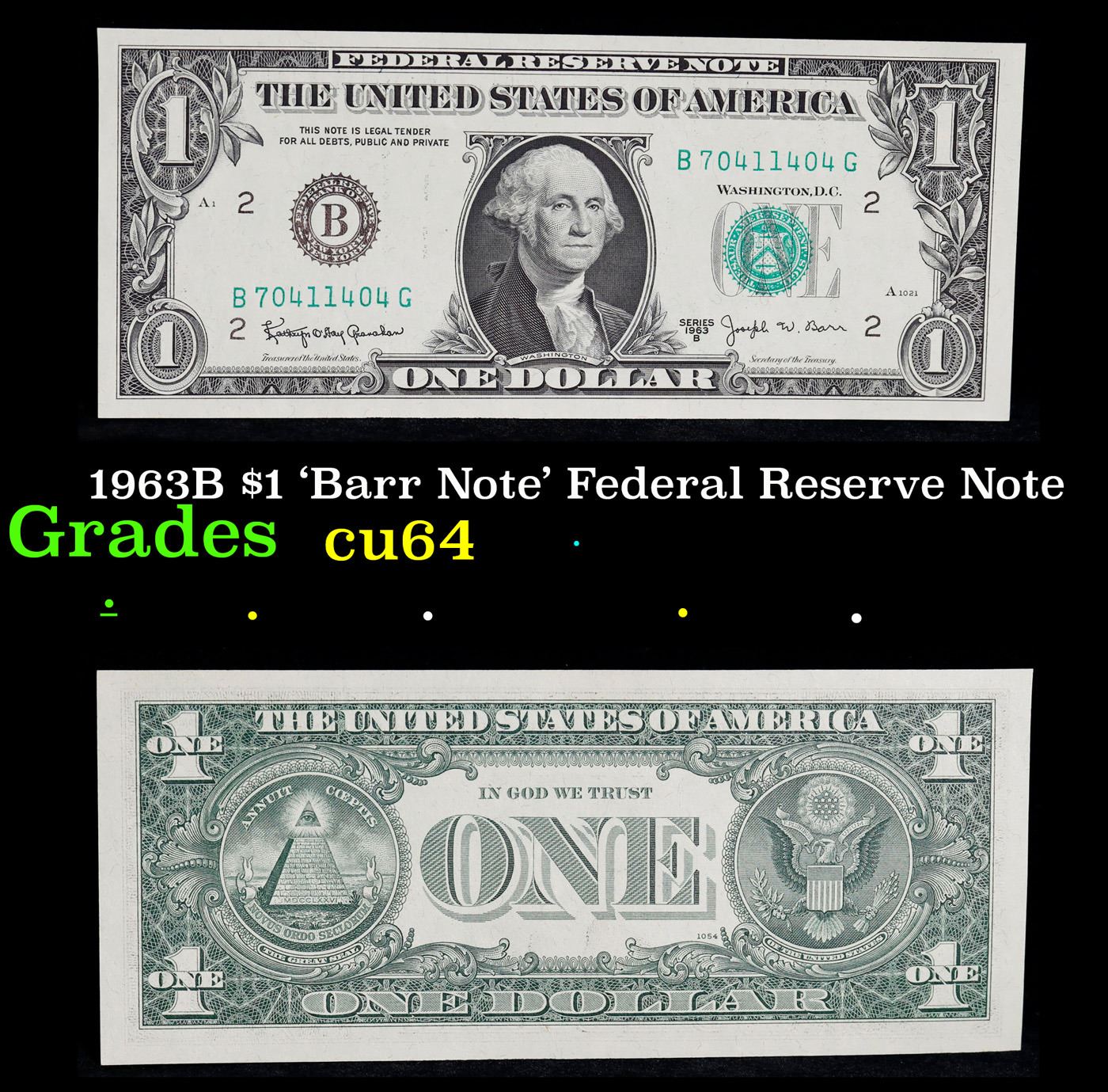 1963B $1 'Barr Note' Federal Reserve Note Grades Choice CU. Among the most sought-after U.S. paper money of the late 1960s are the short-lived "Barr" Notes. These distinctive $1 Federal Reserve Notes bear the signature of Joseph W. Barr, who served as Secretary of the Treasury during the last 28 days of President Lyndon B. Johnson's administration. Barr was replaced when President Nixon chose a successor. Due to Barr's short term, his signature appeared only on the $1 notes of Series 1963B.