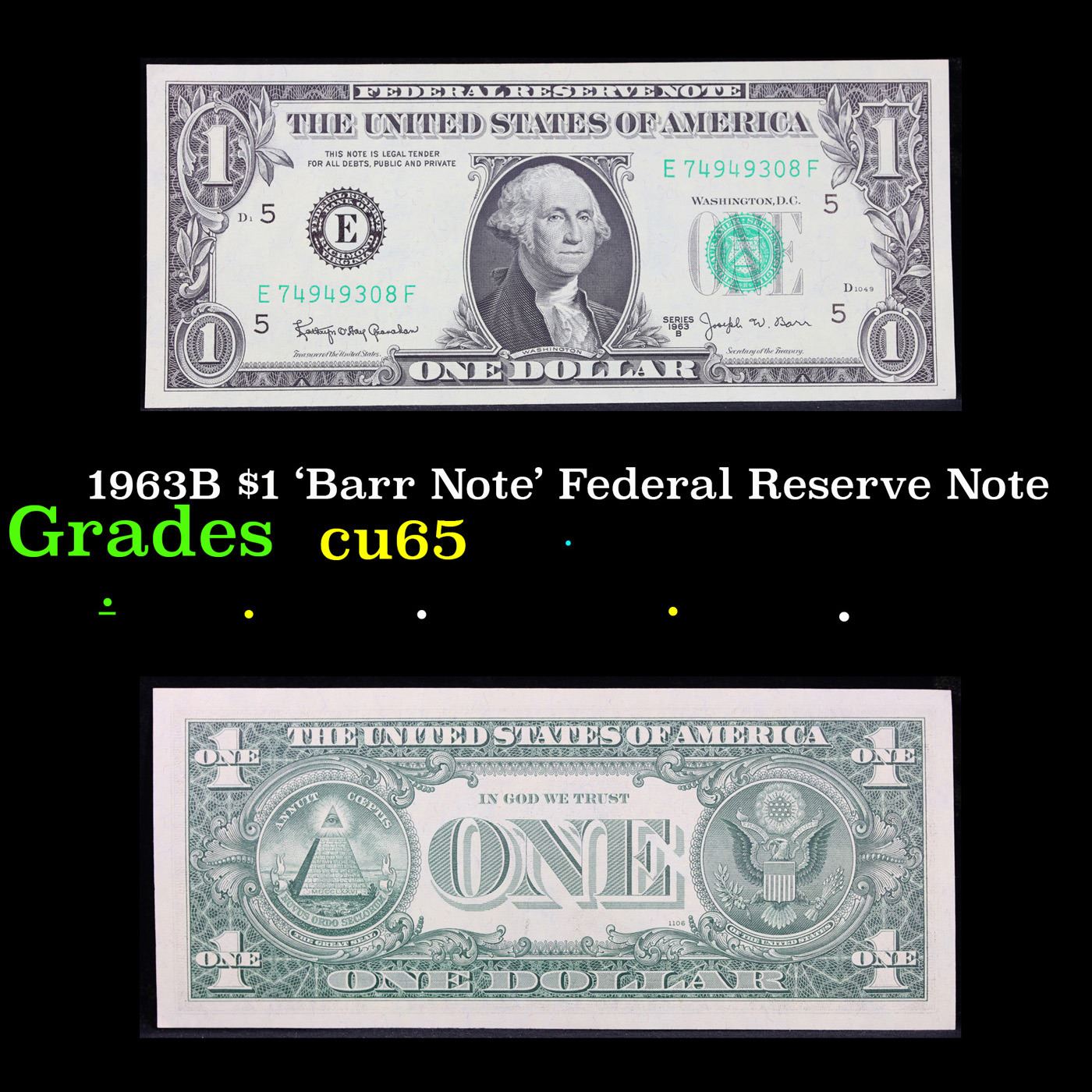 1963B $1 'Barr Note' Federal Reserve Note Grades Gem CU. Among the most sought-after U.S. paper money of the late 1960s are the short-lived "Barr" Notes. These distinctive $1 Federal Reserve Notes bear the signature of Joseph W. Barr, who served as Secretary of the Treasury during the last 28 days of President Lyndon B. Johnson's administration. Barr was replaced when President Nixon chose a successor. Due to Barr's short term, his signature appeared only on the $1 notes of Series 1963B.