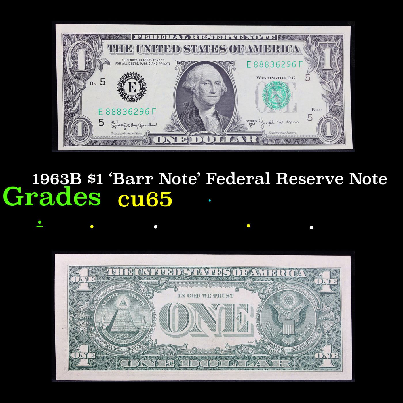 1963B $1 'Barr Note' Federal Reserve Note Grades Gem CU. Among the most sought-after U.S. paper money of the late 1960s are the short-lived "Barr" Notes. These distinctive $1 Federal Reserve Notes bear the signature of Joseph W. Barr, who served as Secretary of the Treasury during the last 28 days of President Lyndon B. Johnson's administration. Barr was replaced when President Nixon chose a successor. Due to Barr's short term, his signature appeared only on the $1 notes of Series 1963B.