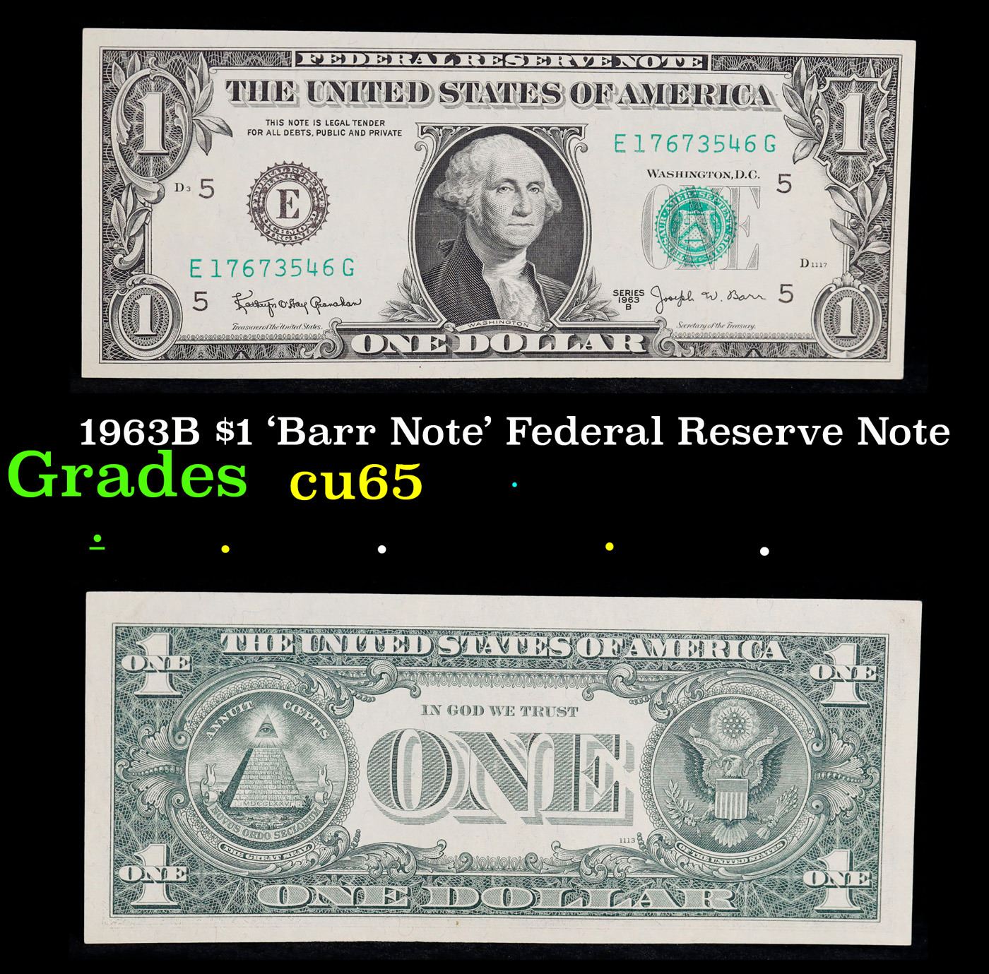 1963B $1 'Barr Note' Federal Reserve Note Grades Gem CU. Among the most sought-after U.S. paper money of the late 1960s are the short-lived "Barr" Notes. These distinctive $1 Federal Reserve Notes bear the signature of Joseph W. Barr, who served as Secretary of the Treasury during the last 28 days of President Lyndon B. Johnson's administration. Barr was replaced when President Nixon chose a successor. Due to Barr's short term, his signature appeared only on the $1 notes of Series 1963B.
