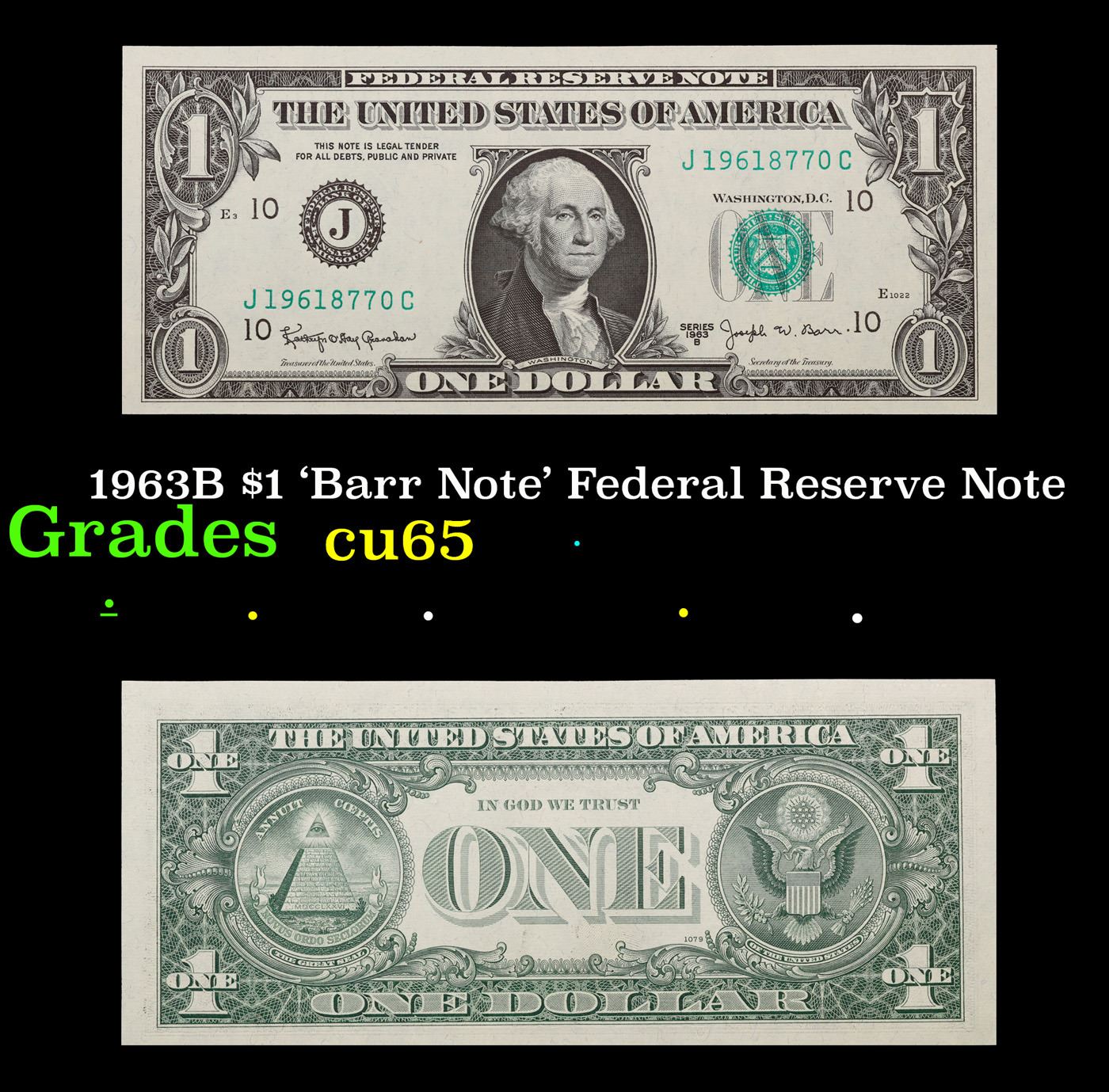 1963B $1 'Barr Note' Federal Reserve Note Grades Gem CU. Among the most sought-after U.S. paper money of the late 1960s are the short-lived "Barr" Notes. These distinctive $1 Federal Reserve Notes bear the signature of Joseph W. Barr, who served as Secretary of the Treasury during the last 28 days of President Lyndon B. Johnson's administration. Barr was replaced when President Nixon chose a successor. Due to Barr's short term, his signature appeared only on the $1 notes of Series 1963B.