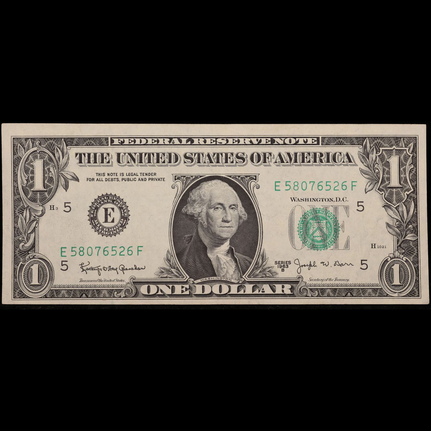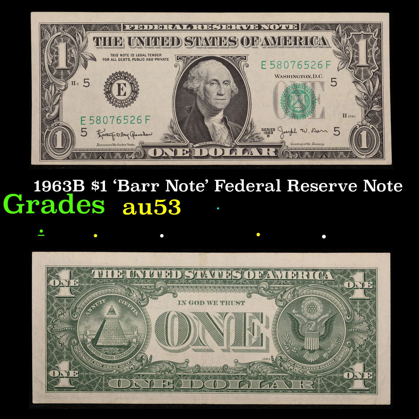 1963B $1 'Barr Note' Federal Reserve Note Grades Select AU. Among the most sought-after U.S. paper money of the late 1960s are the short-lived "Barr" Notes. These distinctive $1 Federal Reserve Notes bear the signature of Joseph W. Barr, who served as Secretary of the Treasury during the last 28 days of President Lyndon B. Johnson's administration. Barr was replaced when President Nixon chose a successor. Due to Barr's short term, his signature appeared only on the $1 notes of Series 1963B.