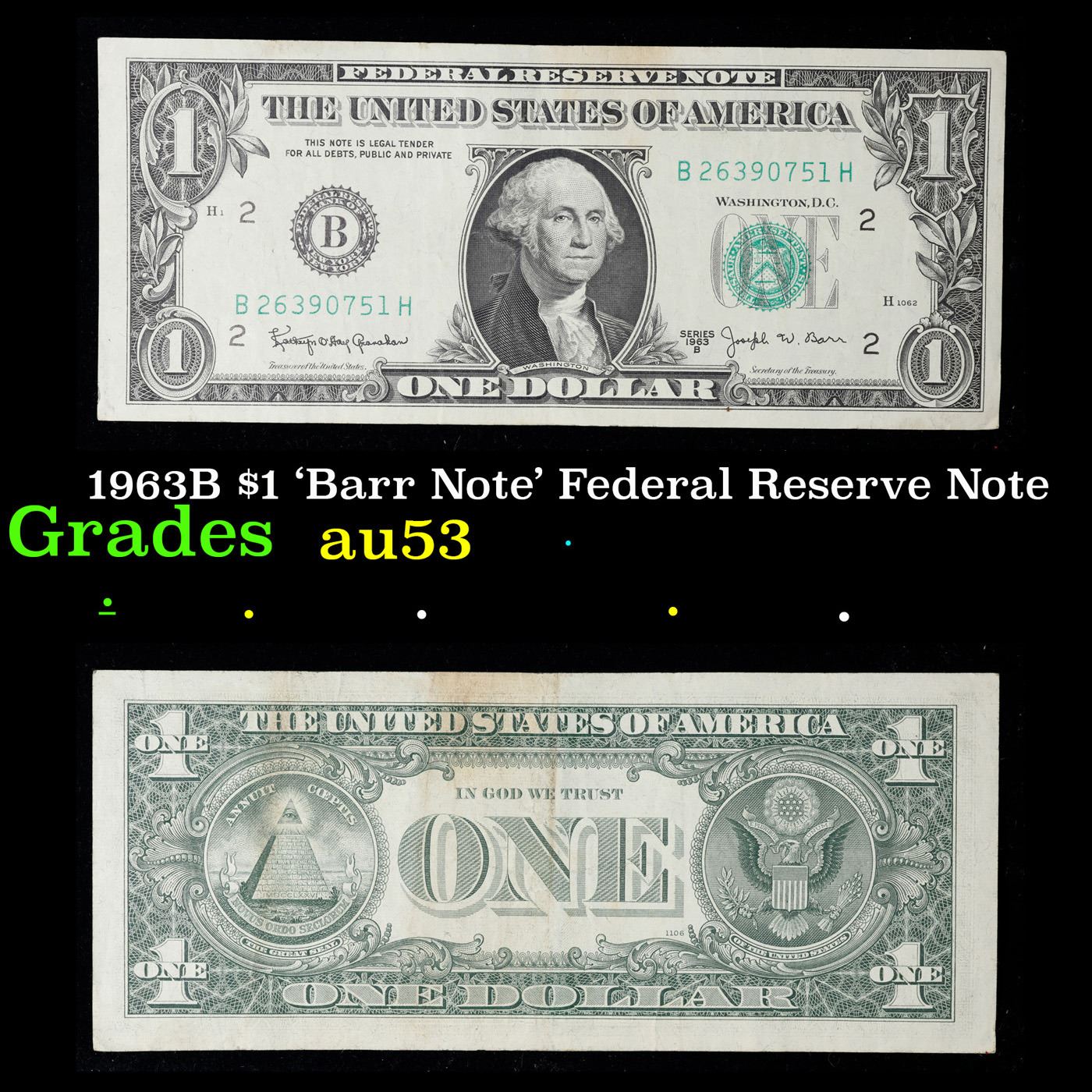 1963B $1 'Barr Note' Federal Reserve Note Grades Select AU. Among the most sought-after U.S. paper money of the late 1960s are the short-lived "Barr" Notes. These distinctive $1 Federal Reserve Notes bear the signature of Joseph W. Barr, who served as Secretary of the Treasury during the last 28 days of President Lyndon B. Johnson's administration. Barr was replaced when President Nixon chose a successor. Due to Barr's short term, his signature appeared only on the $1 notes of Series 1963B.
