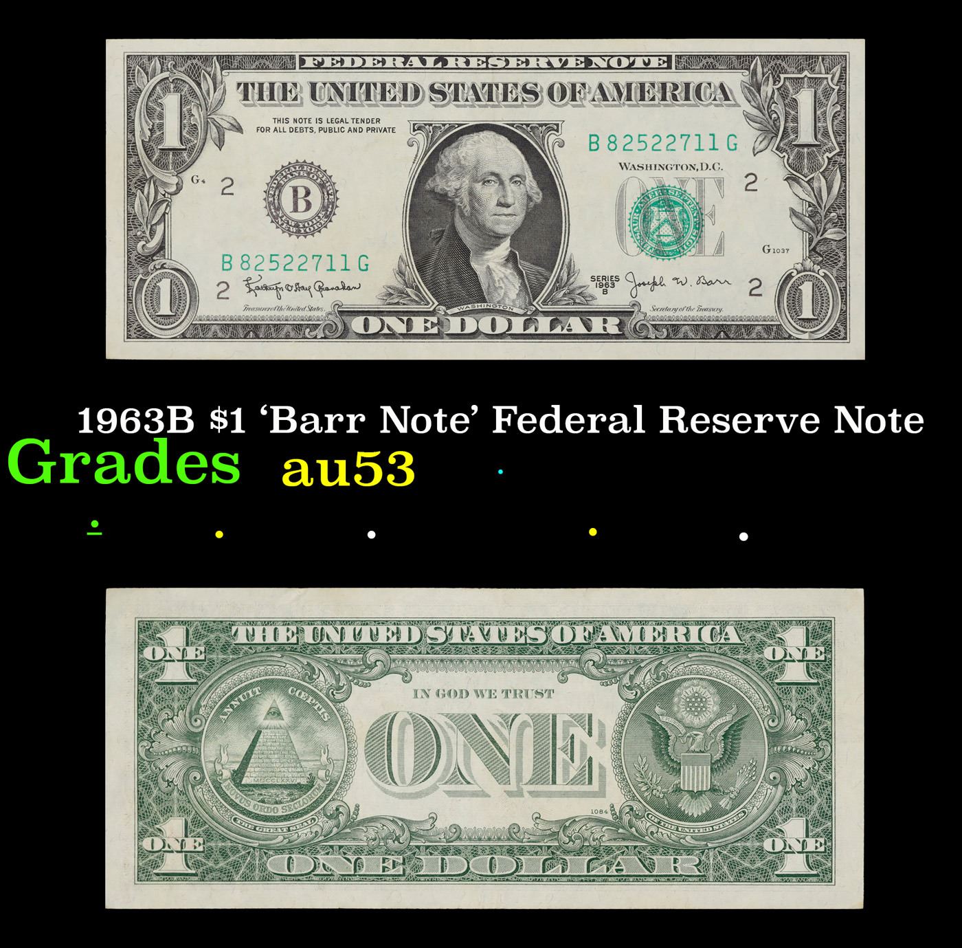 1963B $1 'Barr Note' Federal Reserve Note Grades Select AU. Among the most sought-after U.S. paper money of the late 1960s are the short-lived "Barr" Notes. These distinctive $1 Federal Reserve Notes bear the signature of Joseph W. Barr, who served as Secretary of the Treasury during the last 28 days of President Lyndon B. Johnson's administration. Barr was replaced when President Nixon chose a successor. Due to Barr's short term, his signature appeared only on the $1 notes of Series 1963B.