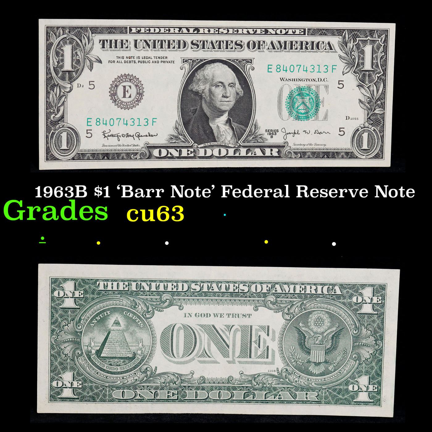 1963B $1 'Barr Note' Federal Reserve Note Grades Select CU. Among the most sought-after U.S. paper money of the late 1960s are the short-lived "Barr" Notes. These distinctive $1 Federal Reserve Notes bear the signature of Joseph W. Barr, who served as Secretary of the Treasury during the last 28 days of President Lyndon B. Johnson's administration. Barr was replaced when President Nixon chose a successor. Due to Barr's short term, his signature appeared only on the $1 notes of Series 1963B.