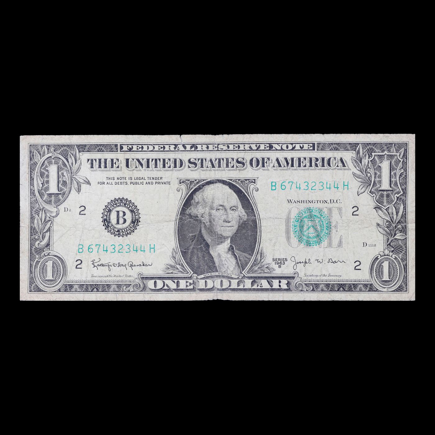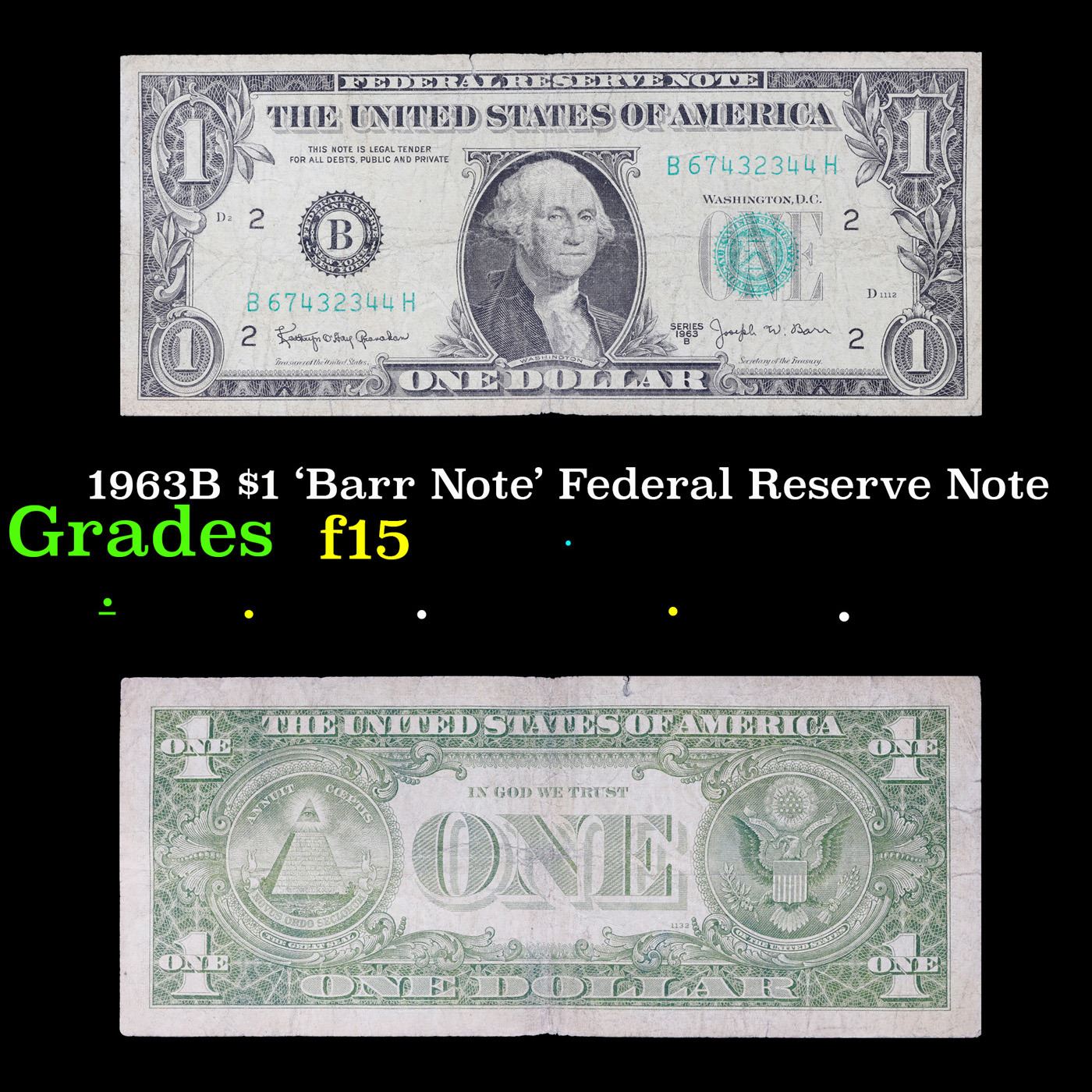 1963B $1 'Barr Note' Federal Reserve Note Grades f+.