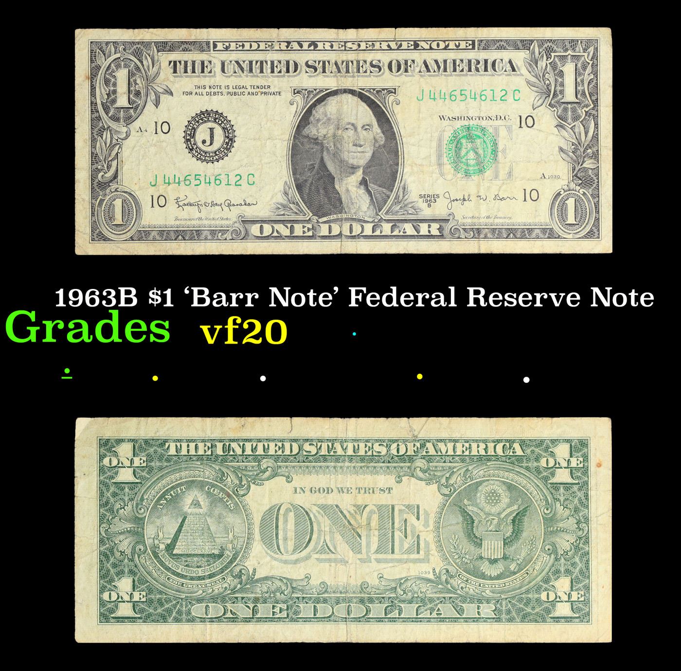 1963B $1 'Barr Note' Federal Reserve Note Grades vf, very fine.