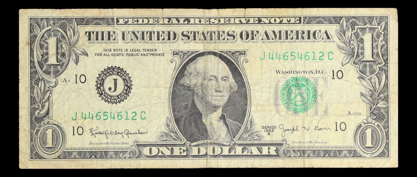 1963B $1 'Barr Note' Federal Reserve Note Grades vf, very fine