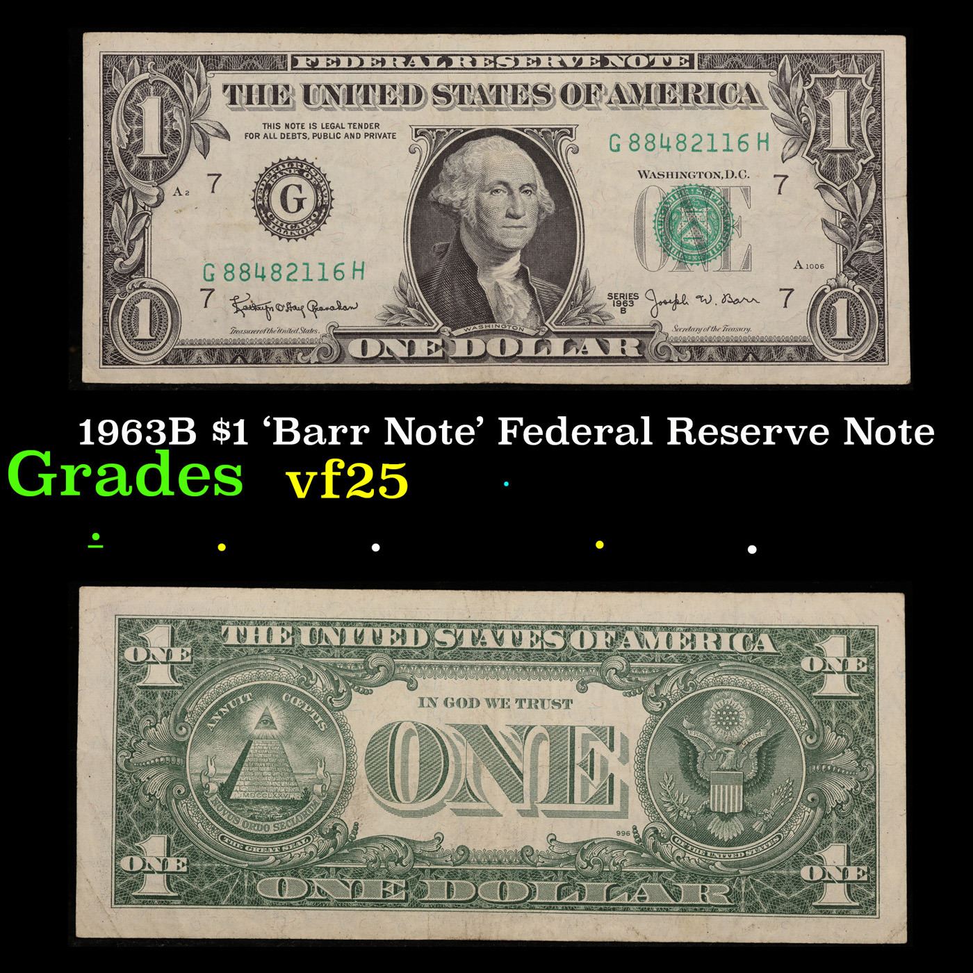 1963B $1 'Barr Note' Federal Reserve Note Grades vf+. Among the most sought-after U.S. paper money of the late 1960s are the short-lived "Barr" Notes. These distinctive $1 Federal Reserve Notes bear the signature of Joseph W. Barr, who served as Secretary of the Treasury during the last 28 days of President Lyndon B. Johnson's administration. Barr was replaced when President Nixon chose a successor. Due to Barr's short term, his signature appeared only on the $1 notes of Series 1963B.