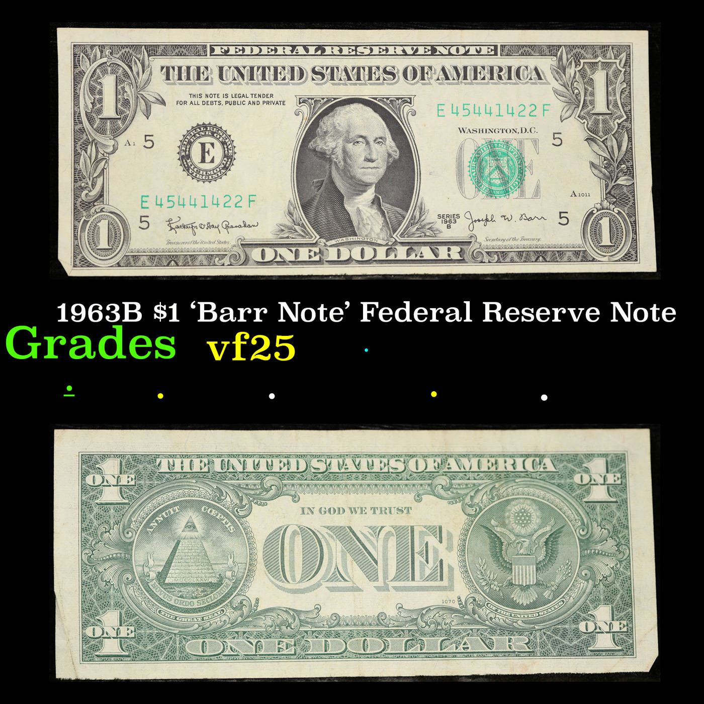 1963B $1 'Barr Note' Federal Reserve Note Grades vf+. Among the most sought-after U.S. paper money of the late 1960s are the short-lived "Barr" Notes. These distinctive $1 Federal Reserve Notes bear the signature of Joseph W. Barr, who served as Secretary of the Treasury during the last 28 days of President Lyndon B. Johnson's administration. Barr was replaced when President Nixon chose a successor. Due to Barr's short term, his signature appeared only on the $1 notes of Series 1963B.