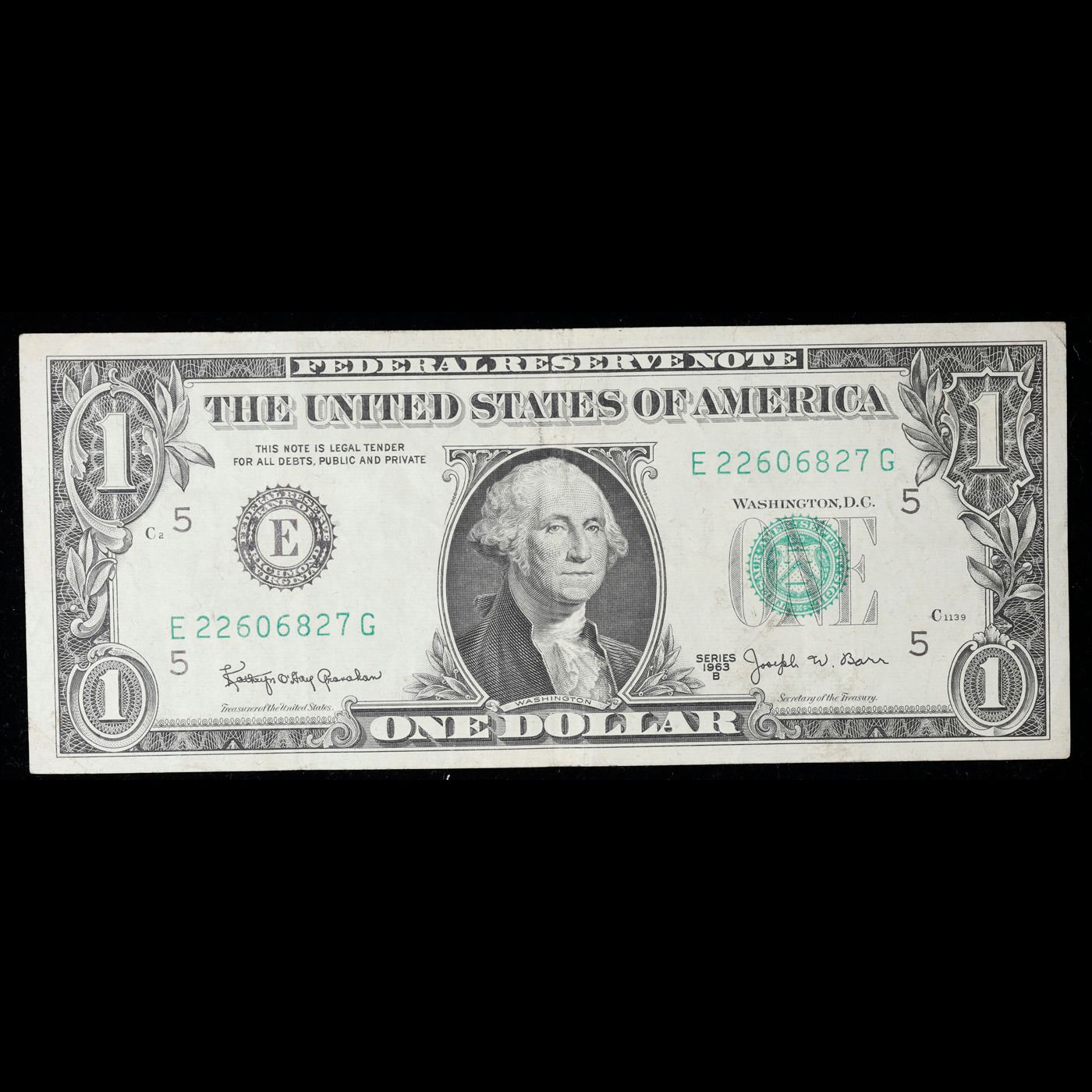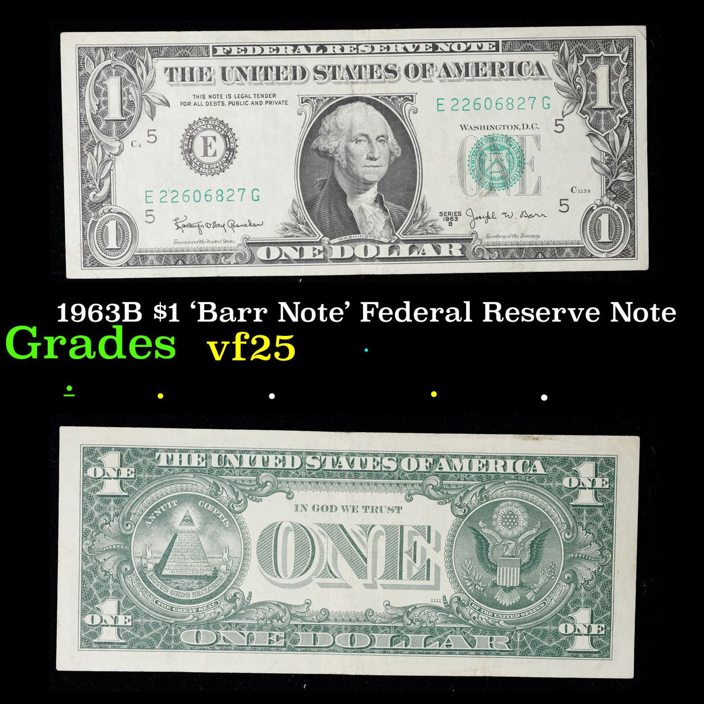 1963B $1 'Barr Note' Federal Reserve Note Grades vf+. Among the most sought-after U.S. paper money of the late 1960s are the short-lived "Barr" Notes. These distinctive $1 Federal Reserve Notes bear the signature of Joseph W. Barr, who served as Secretary of the Treasury during the last 28 days of President Lyndon B. Johnson's administration. Barr was replaced when President Nixon chose a successor. Due to Barr's short term, his signature appeared only on the $1 notes of Series 1963B.