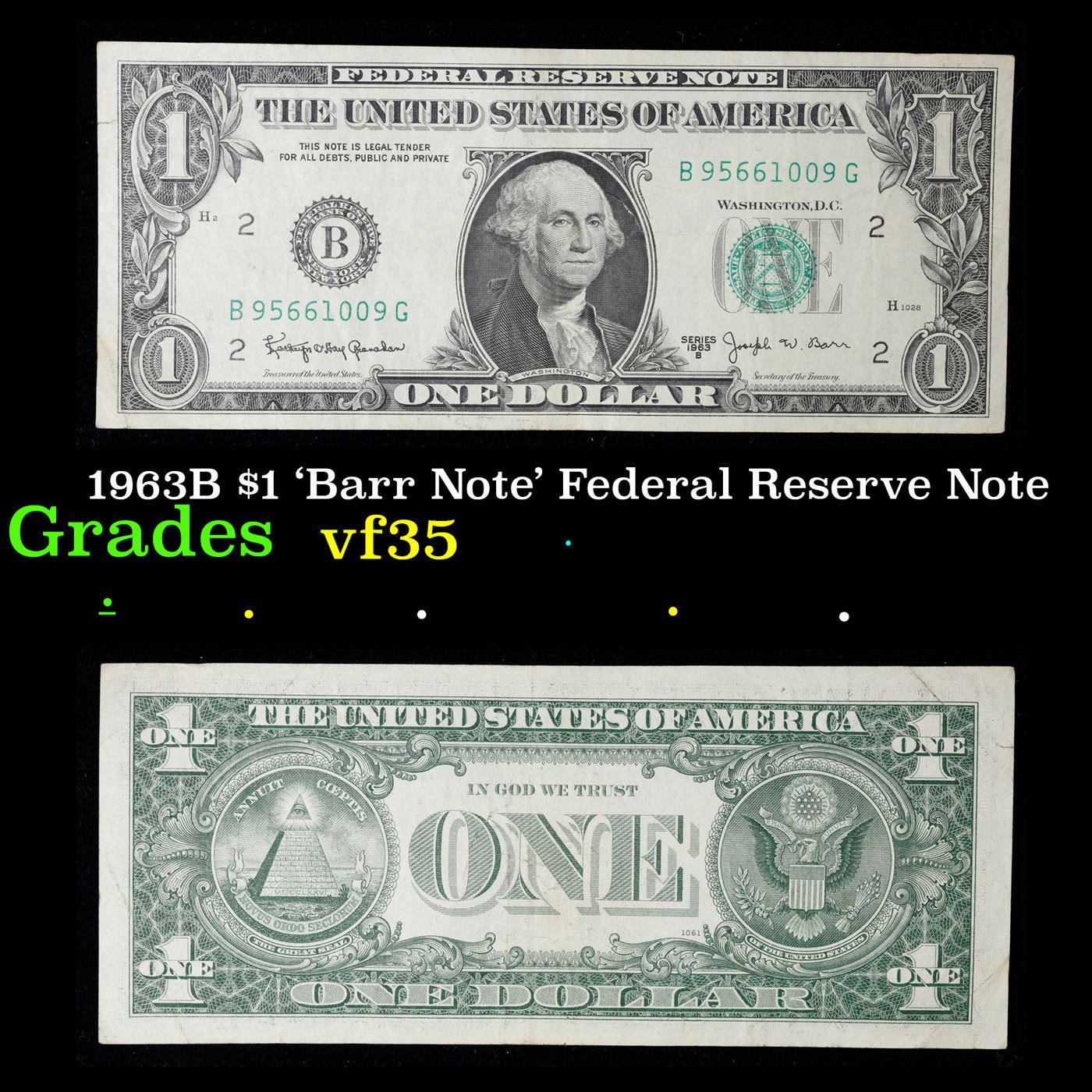 1963B $1 'Barr Note' Federal Reserve Note Grades vf++. Among the most sought-after U.S. paper money of the late 1960s are the short-lived "Barr" Notes. These distinctive $1 Federal Reserve Notes bear the signature of Joseph W. Barr, who served as Secretary of the Treasury during the last 28 days of President Lyndon B. Johnson's administration. Barr was replaced when President Nixon chose a successor. Due to Barr's short term, his signature appeared only on the $1 notes of Series 1963B.