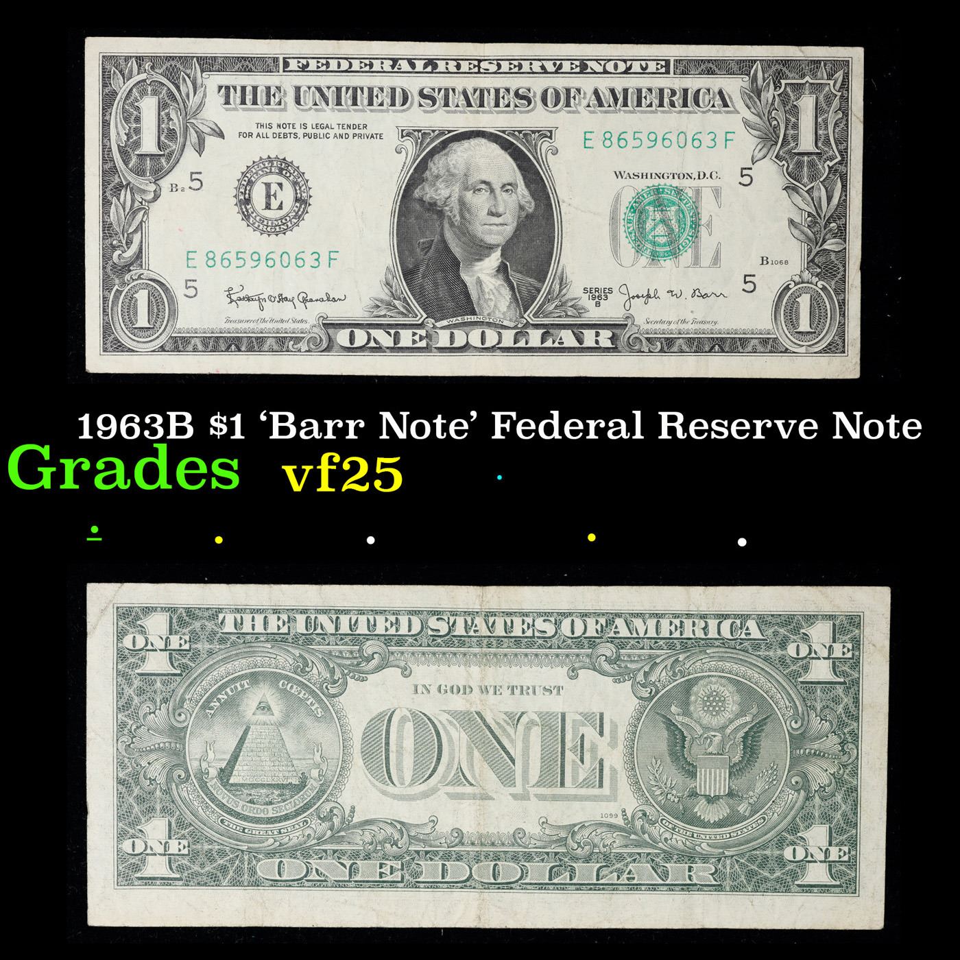 1963B $1 'Barr Note' Federal Reserve Note Grades vf+. Among the most sought-after U.S. paper money of the late 1960s are the short-lived "Barr" Notes. These distinctive $1 Federal Reserve Notes bear the signature of Joseph W. Barr, who served as Secretary of the Treasury during the last 28 days of President Lyndon B. Johnson's administration. Barr was replaced when President Nixon chose a successor. Due to Barr's short term, his signature appeared only on the $1 notes of Series 1963B.