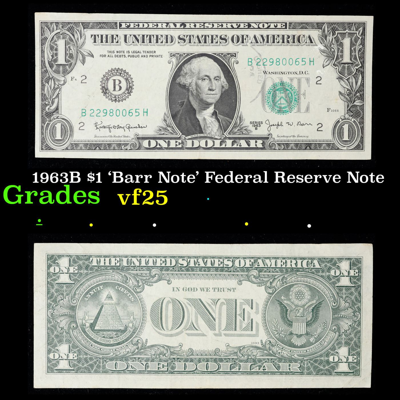 1963B $1 'Barr Note' Federal Reserve Note Grades vf+. Among the most sought-after U.S. paper money of the late 1960s are the short-lived "Barr" Notes. These distinctive $1 Federal Reserve Notes bear the signature of Joseph W. Barr, who served as Secretary of the Treasury during the last 28 days of President Lyndon B. Johnson's administration. Barr was replaced when President Nixon chose a successor. Due to Barr's short term, his signature appeared only on the $1 notes of Series 1963B.