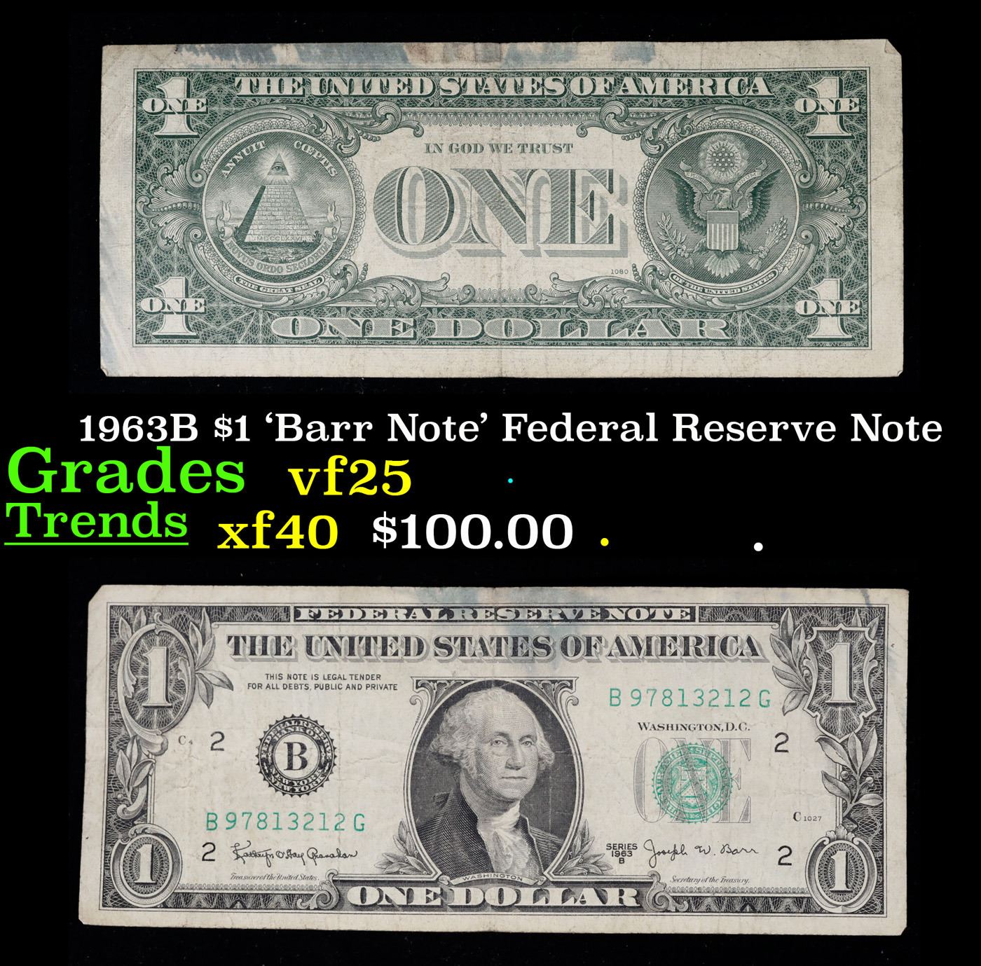 1963B $1 'Barr Note' Federal Reserve Note Grades vf+. Among the most sought-after U.S. paper money of the late 1960s are the short-lived "Barr" Notes. These distinctive $1 Federal Reserve Notes bear the signature of Joseph W. Barr, who served as Secretary of the Treasury during the last 28 days of President Lyndon B. Johnson's administration. Barr was replaced when President Nixon chose a successor. Due to Barr's short term, his signature appeared only on the $1 notes of Series 1963B.