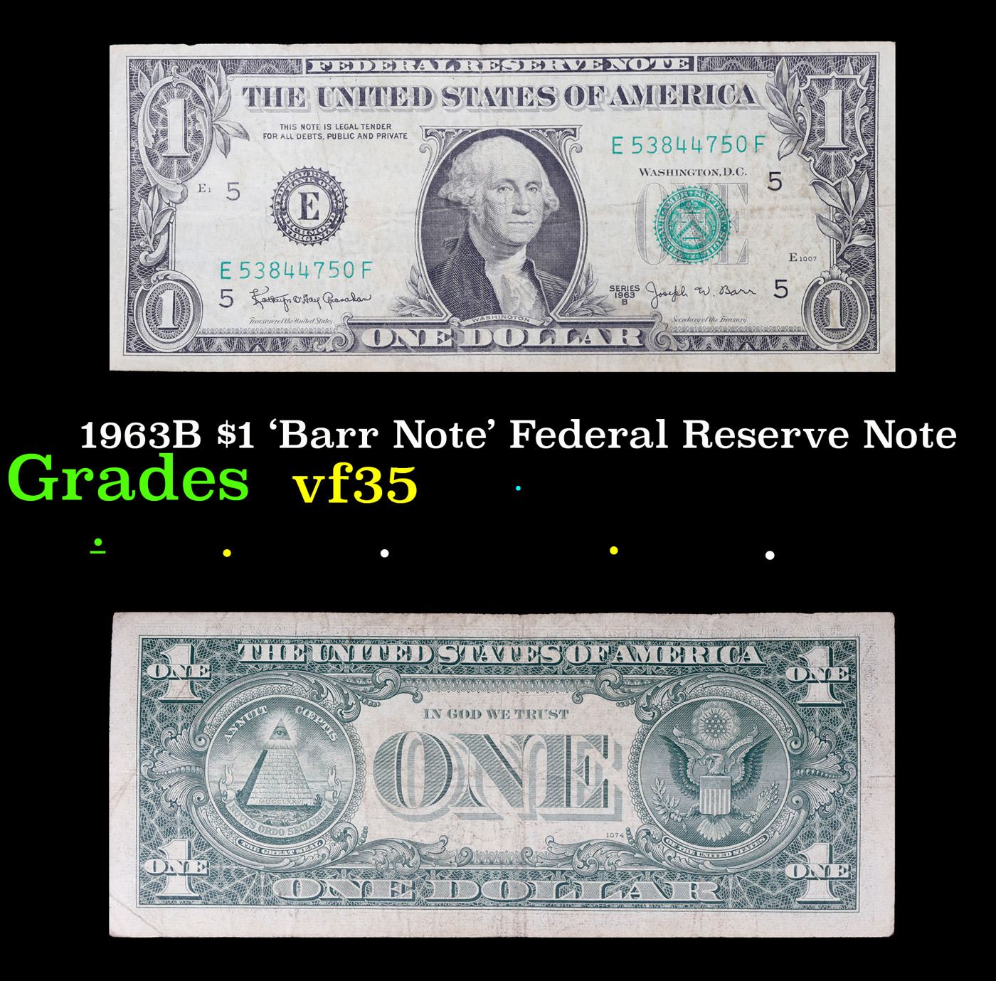 1963B $1 'Barr Note' Federal Reserve Note Grades vf++.