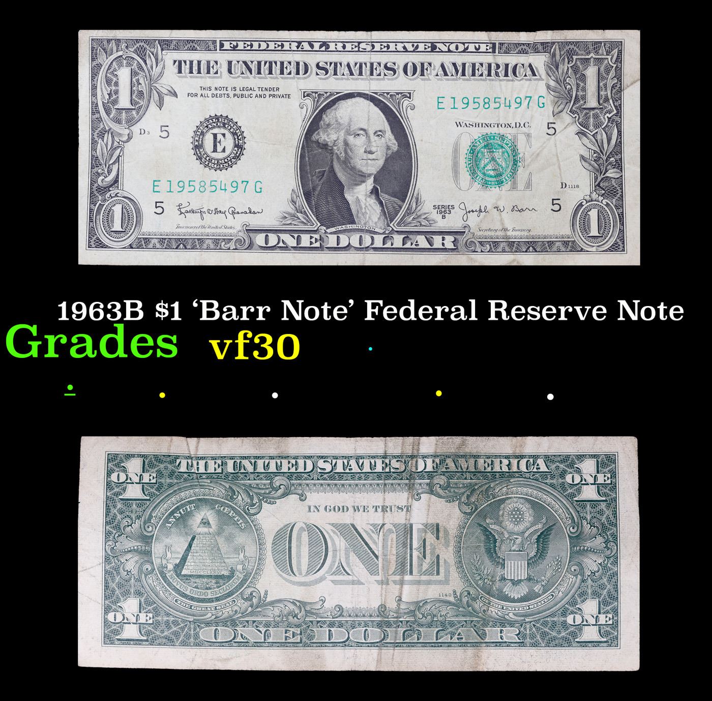 1963B $1 'Barr Note' Federal Reserve Note Grades vf++.