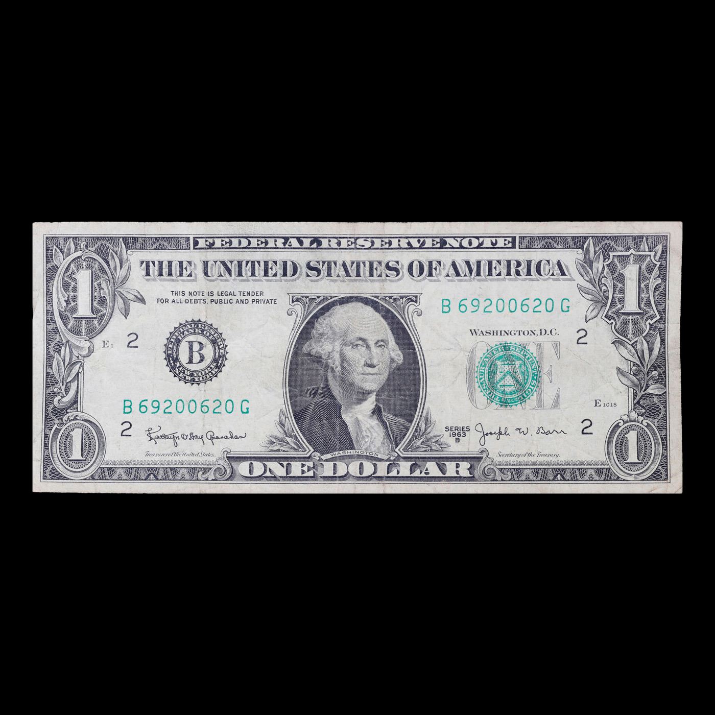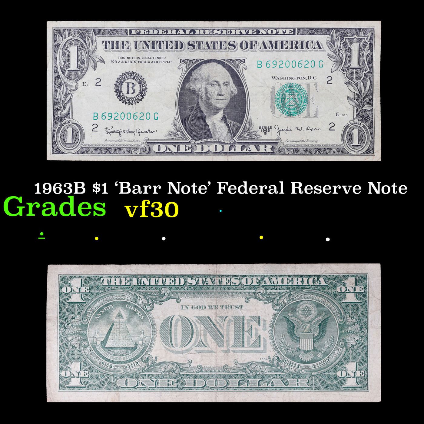 1963B $1 'Barr Note' Federal Reserve Note Grades vf++.