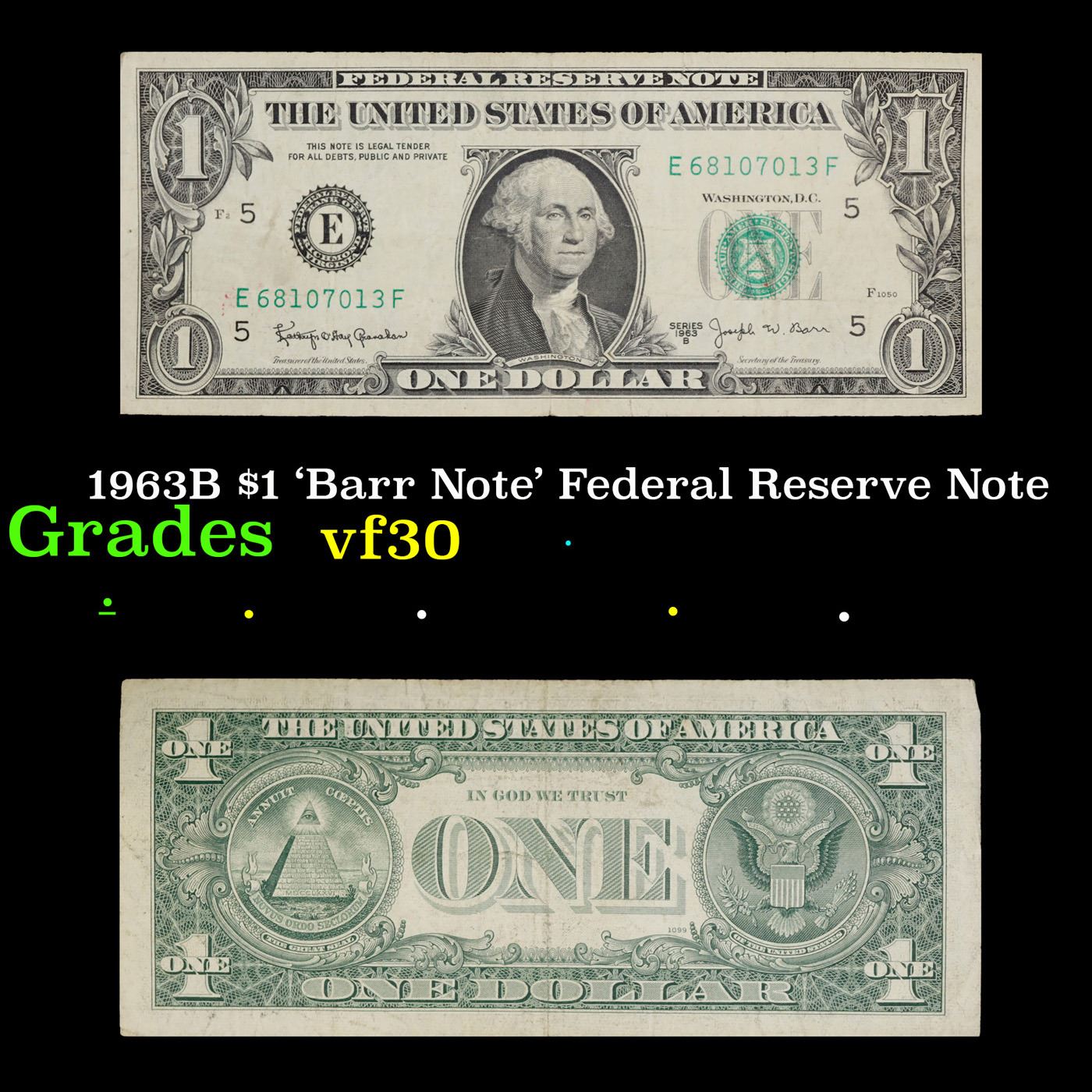 1963B $1 'Barr Note' Federal Reserve Note Grades vf++.