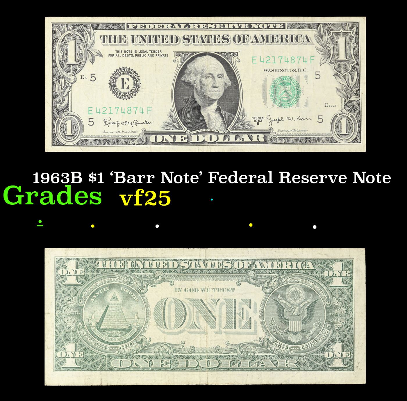 1963B $1 'Barr Note' Federal Reserve Note Grades vf+. Among the most sought-after U.S. paper money of the late 1960's are the short-lived "Barr" Notes. These distinctive $1 Federal Reserve Notes bear the signature of Joseph W. Barr, who served as Secretary of the Treasury during the last 28 days of President Lyndon B. Johnson's administration. Barr was replaced when President Nixon chose a successor. Due to Barr's short term, his signature appeared only on the $1 notes of Series 1963B.