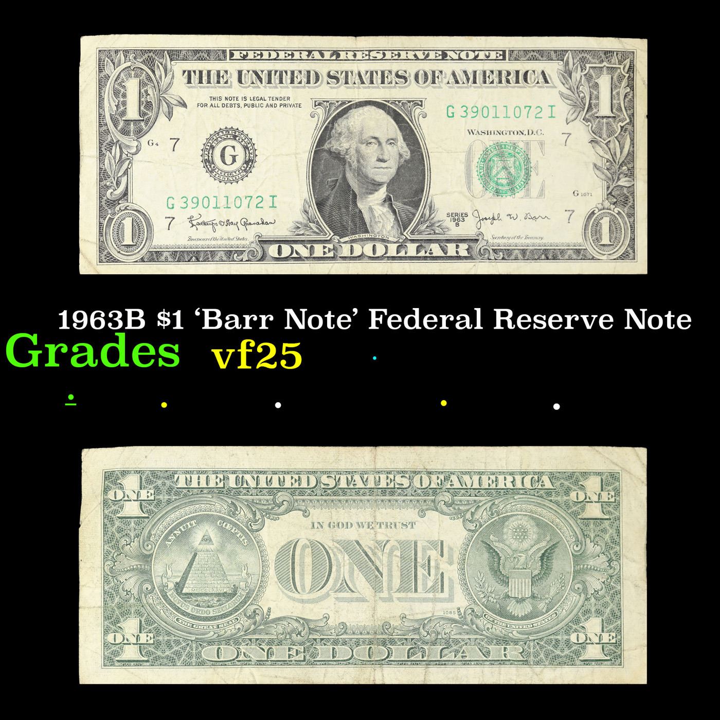 1963B $1 'Barr Note' Federal Reserve Note Grades vf+. Among the most sought-after U.S. paper money of the late 1960's are the short-lived "Barr" Notes. These distinctive $1 Federal Reserve Notes bear the signature of Joseph W. Barr, who served as Secretary of the Treasury during the last 28 days of President Lyndon B. Johnson's administration. Barr was replaced when President Nixon chose a successor. Due to Barr's short term, his signature appeared only on the $1 notes of Series 1963B.