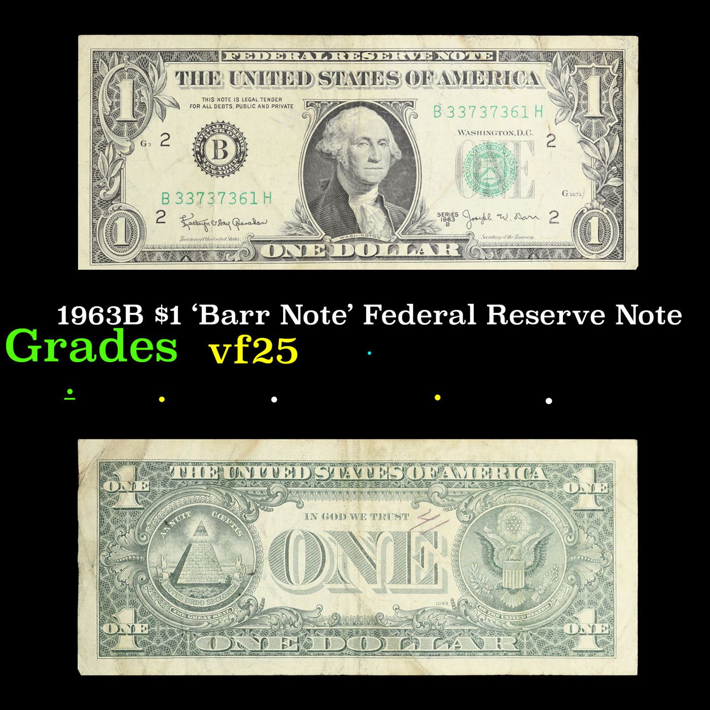 1963B $1 'Barr Note' Federal Reserve Note Grades vf+. Among the most sought-after U.S. paper money of the late 1960's are the short-lived "Barr" Notes. These distinctive $1 Federal Reserve Notes bear the signature of Joseph W. Barr, who served as Secretary of the Treasury during the last 28 days of President Lyndon B. Johnson's administration. Barr was replaced when President Nixon chose a successor. Due to Barr's short term, his signature appeared only on the $1 notes of Series 1963B.