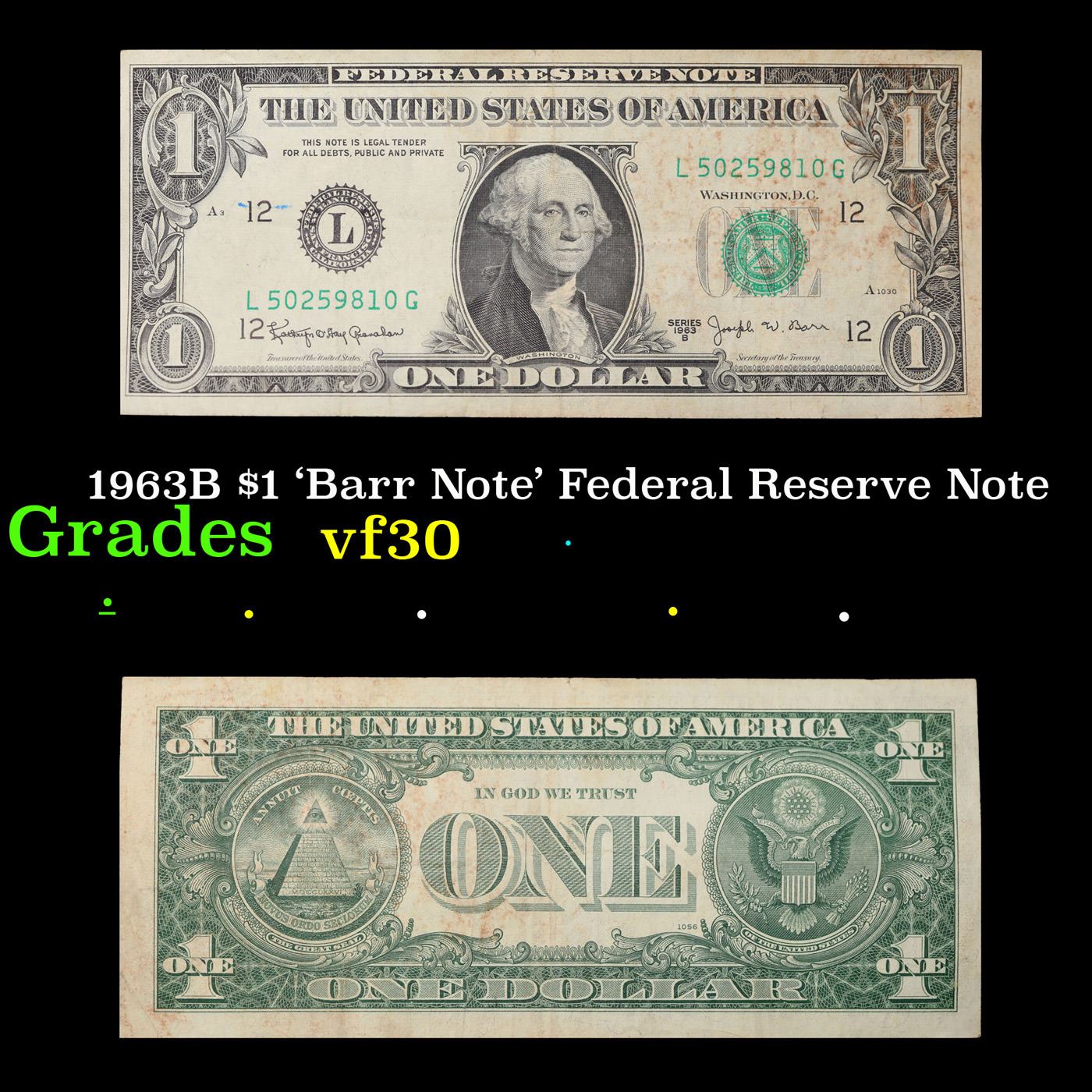 1963B $1 'Barr Note' Federal Reserve Note Grades vf++. Among the most sought-after U.S. paper money of the late 1960's are the short-lived "Barr" Notes. These distinctive $1 Federal Reserve Notes bear the signature of Joseph W. Barr, who served as Secretary of the Treasury during the last 28 days of President Lyndon B. Johnson's administration. Barr was replaced when President Nixon chose a successor. Due to Barr's short term, his signature appeared only on the $1 notes of Series 1963B.