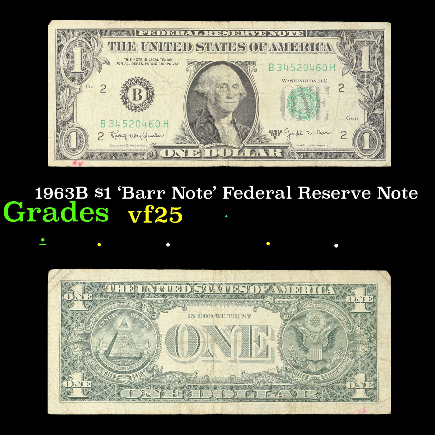 1963B $1 'Barr Note' Federal Reserve Note Grades vf+. Among the most sought-after U.S. paper money of the late 1960's are the short-lived "Barr" Notes. These distinctive $1 Federal Reserve Notes bear the signature of Joseph W. Barr, who served as Secretary of the Treasury during the last 28 days of President Lyndon B. Johnson's administration. Barr was replaced when President Nixon chose a successor. Due to Barr's short term, his signature appeared only on the $1 notes of Series 1963B.