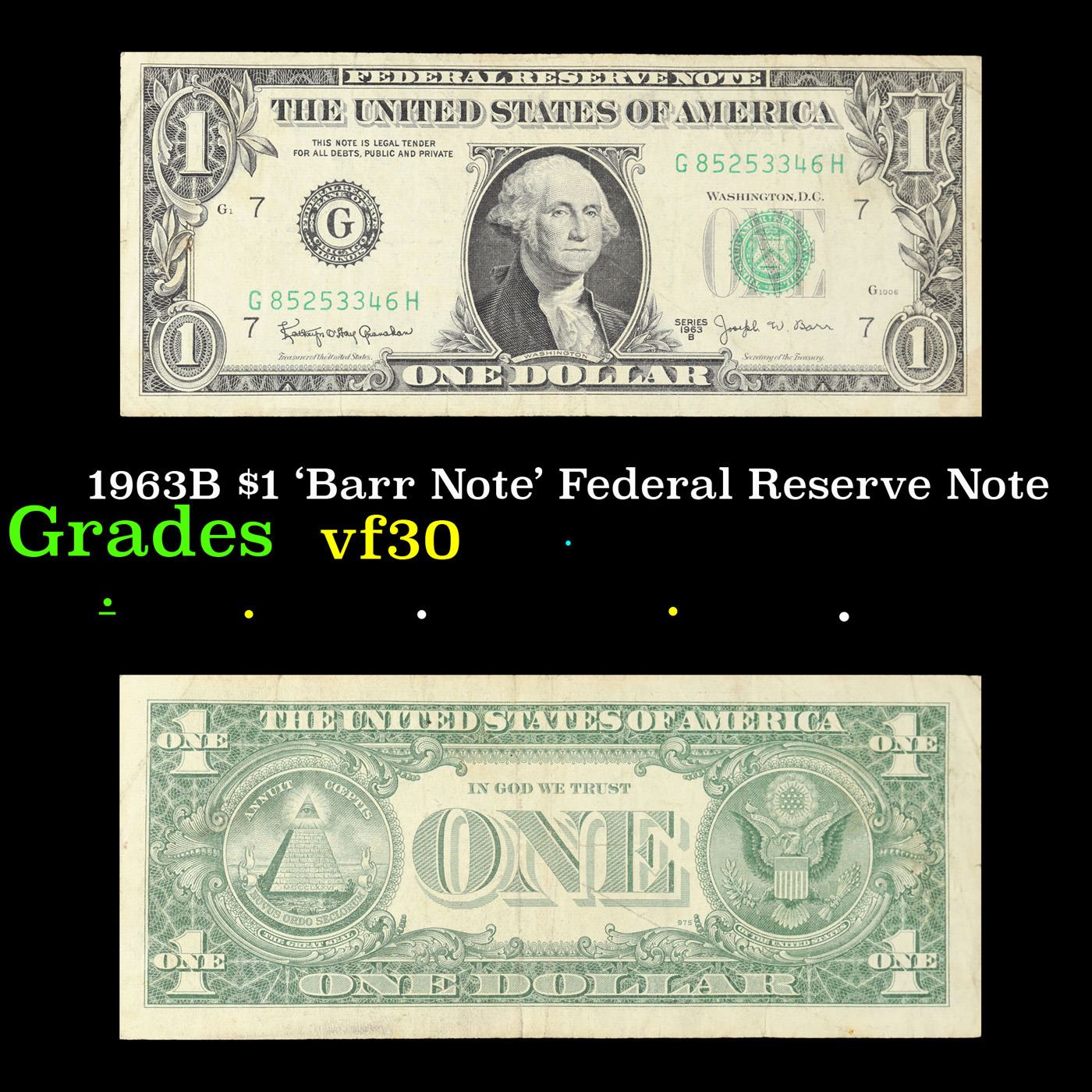 1963B $1 'Barr Note' Federal Reserve Note Grades vf++. Among the most sought-after U.S. paper money of the late 1960's are the short-lived "Barr" Notes. These distinctive $1 Federal Reserve Notes bear the signature of Joseph W. Barr, who served as Secretary of the Treasury during the last 28 days of President Lyndon B. Johnson's administration. Barr was replaced when President Nixon chose a successor. Due to Barr's short term, his signature appeared only on the $1 notes of Series 1963B.