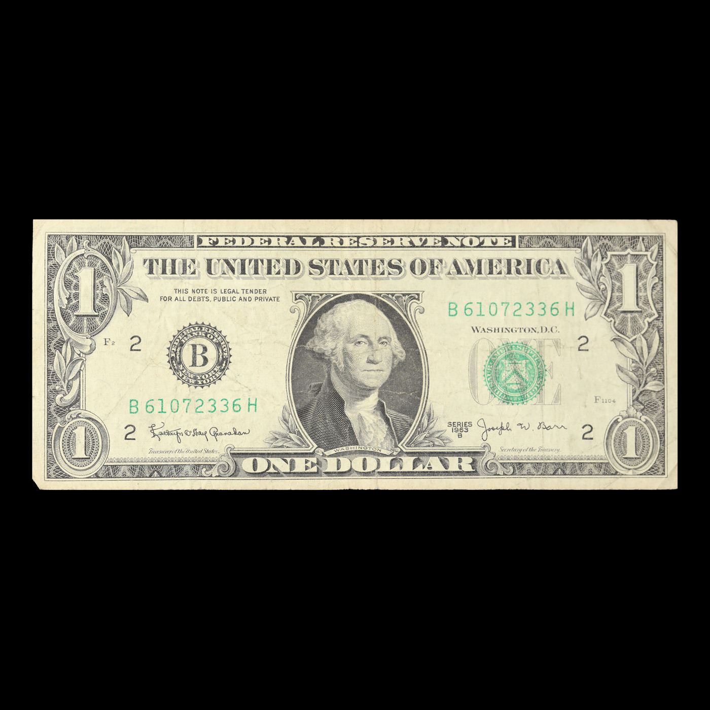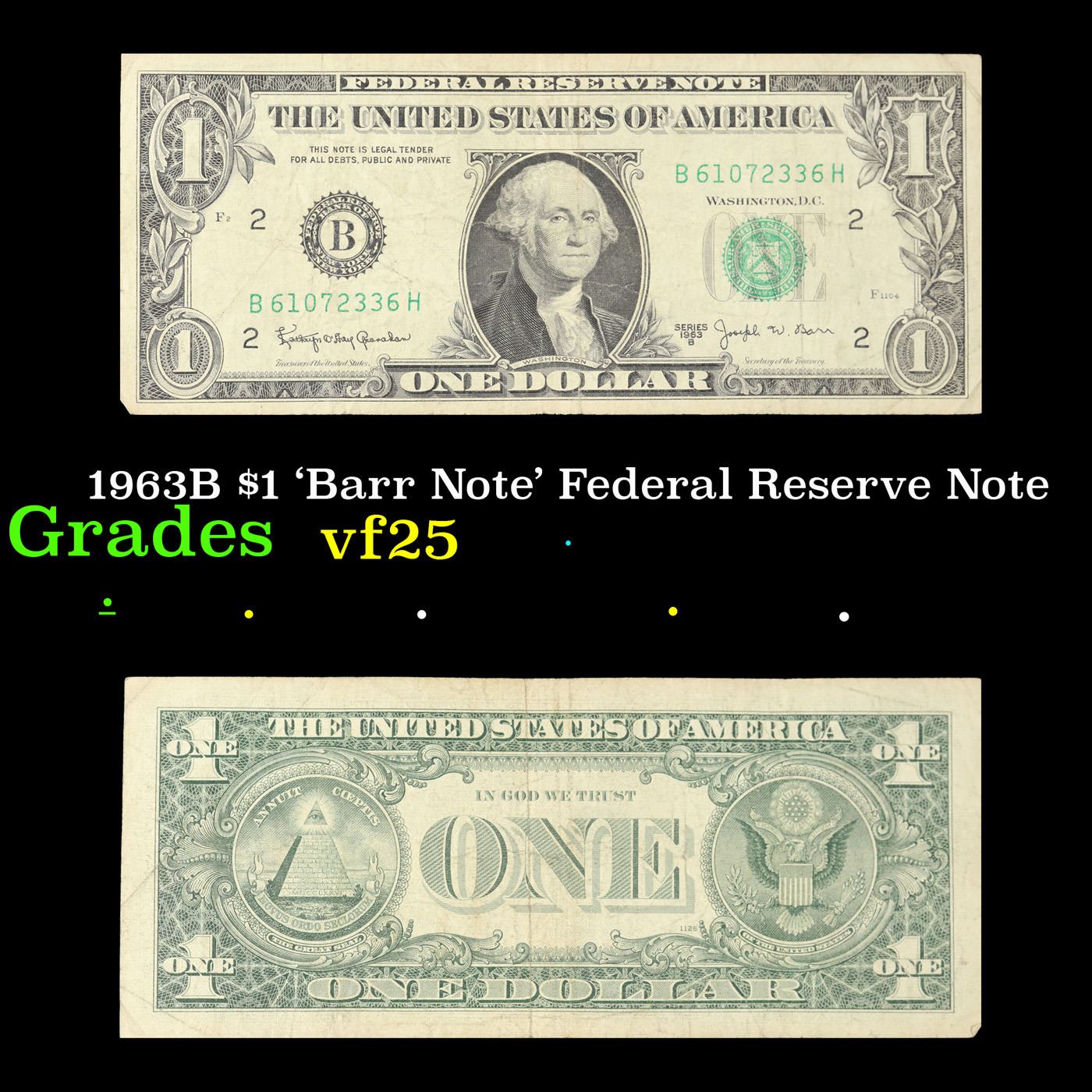 1963B $1 'Barr Note' Federal Reserve Note Grades vf+. Among the most sought-after U.S. paper money of the late 1960's are the short-lived "Barr" Notes. These distinctive $1 Federal Reserve Notes bear the signature of Joseph W. Barr, who served as Secretary of the Treasury during the last 28 days of President Lyndon B. Johnson's administration. Barr was replaced when President Nixon chose a successor. Due to Barr's short term, his signature appeared only on the $1 notes of Series 1963B.