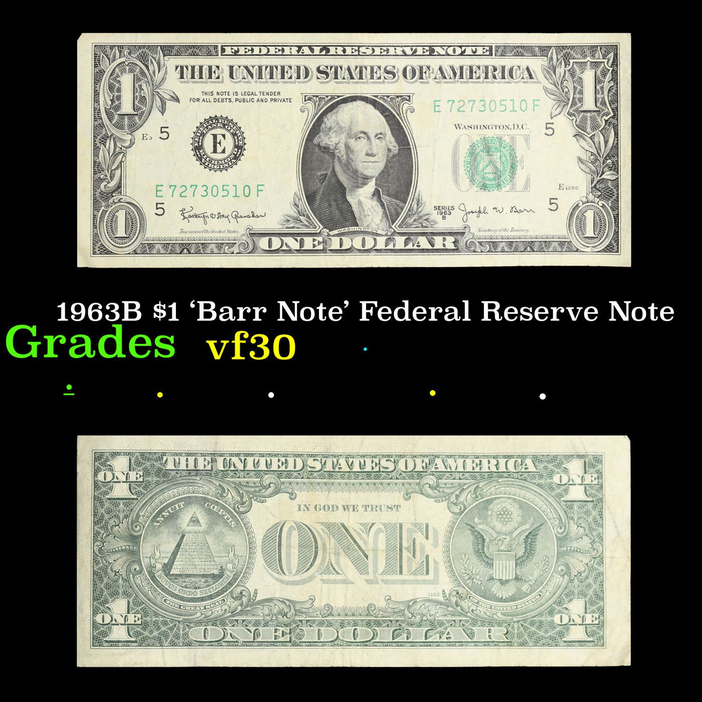 1963B $1 'Barr Note' Federal Reserve Note Grades vf++. Among the most sought-after U.S. paper money of the late 1960's are the short-lived "Barr" Notes. These distinctive $1 Federal Reserve Notes bear the signature of Joseph W. Barr, who served as Secretary of the Treasury during the last 28 days of President Lyndon B. Johnson's administration. Barr was replaced when President Nixon chose a successor. Due to Barr's short term, his signature appeared only on the $1 notes of Series 1963B.
