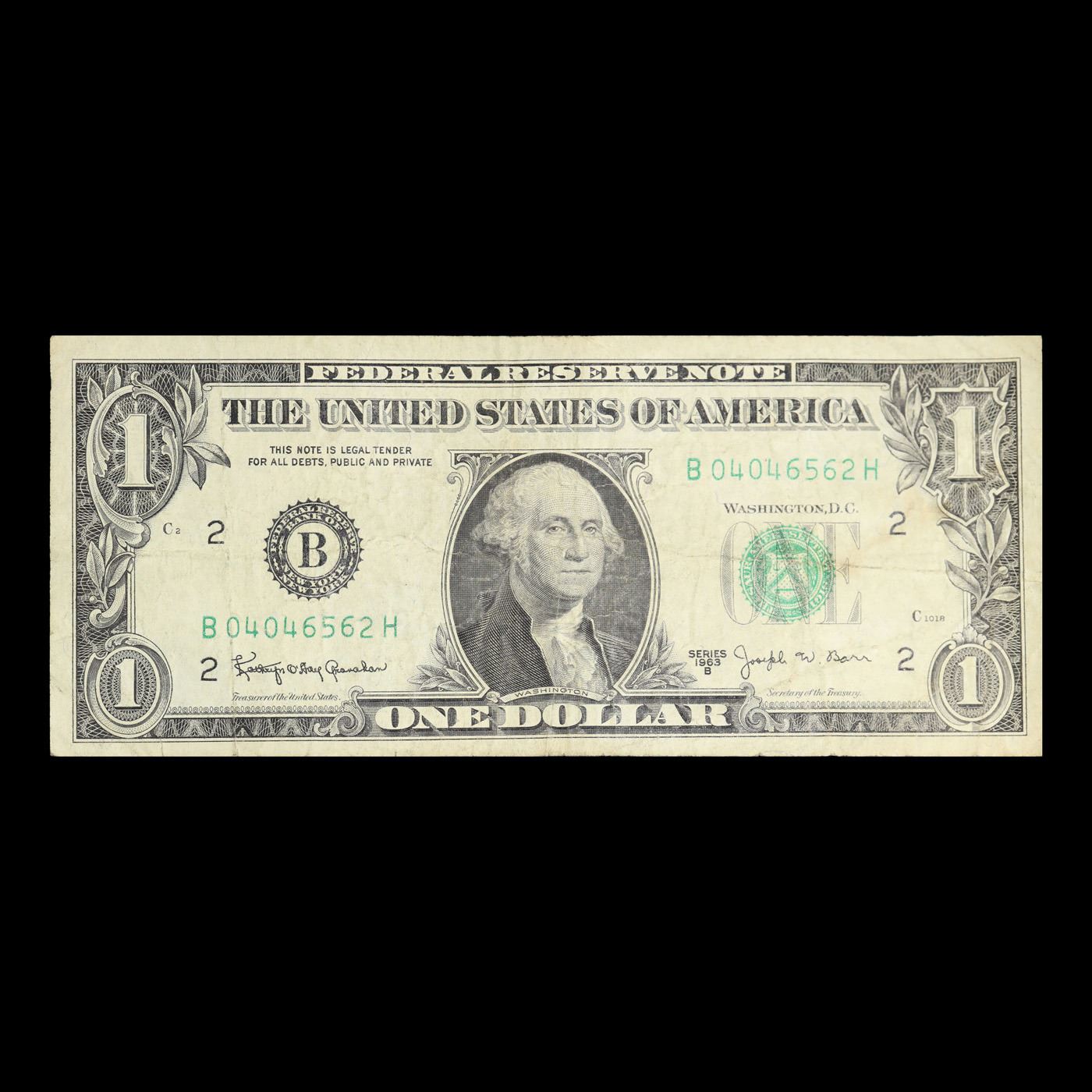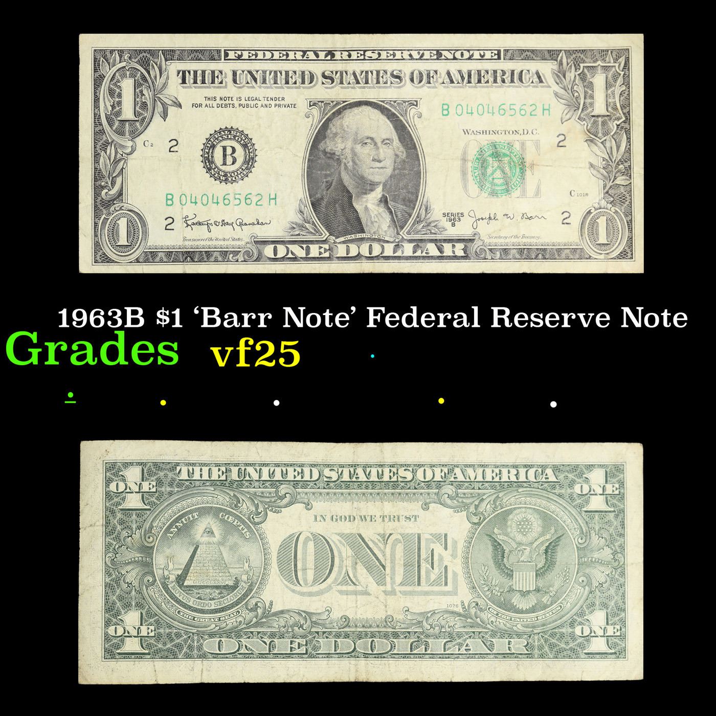 1963B $1 'Barr Note' Federal Reserve Note Grades vf+. Among the most sought-after U.S. paper money of the late 1960's are the short-lived "Barr" Notes. These distinctive $1 Federal Reserve Notes bear the signature of Joseph W. Barr, who served as Secretary of the Treasury during the last 28 days of President Lyndon B. Johnson's administration. Barr was replaced when President Nixon chose a successor. Due to Barr's short term, his signature appeared only on the $1 notes of Series 1963B.
