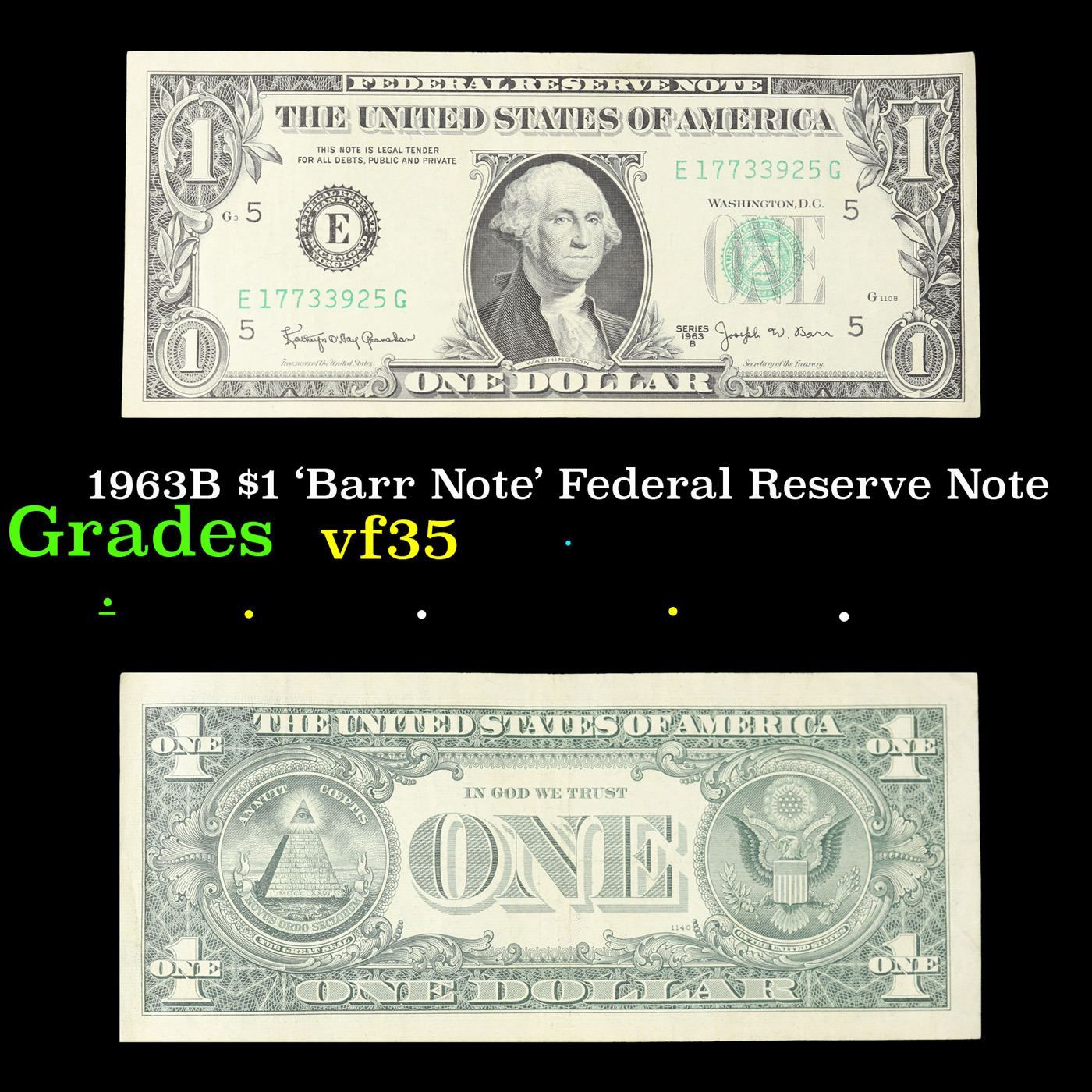 1963B $1 'Barr Note' Federal Reserve Note Grades vf++. Among the most sought-after U.S. paper money of the late 1960's are the short-lived "Barr" Notes. These distinctive $1 Federal Reserve Notes bear the signature of Joseph W. Barr, who served as Secretary of the Treasury during the last 28 days of President Lyndon B. Johnson's administration. Barr was replaced when President Nixon chose a successor. Due to Barr's short term, his signature appeared only on the $1 notes of Series 1963B.